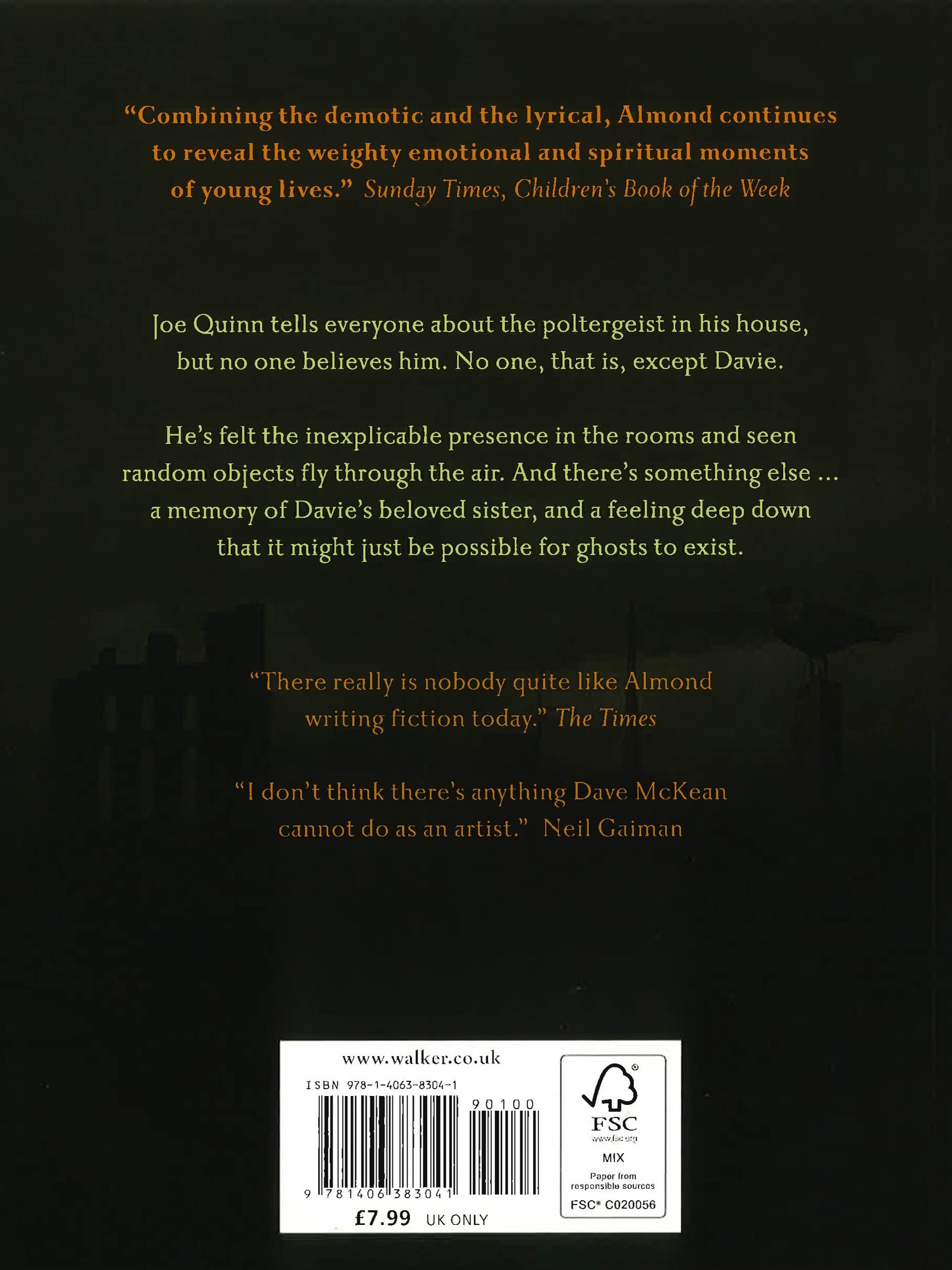 Joe Quinn tells everyone about the poltergeist in his house, but no one believes him. No one that is, except for Davie. He's felt the inexplicable presence in the rooms, he's seen random objects fly through the air. And there's something else ... a memory of his beloved sister, and a feeling deep down that somehow it might be possible for ghosts to exist.