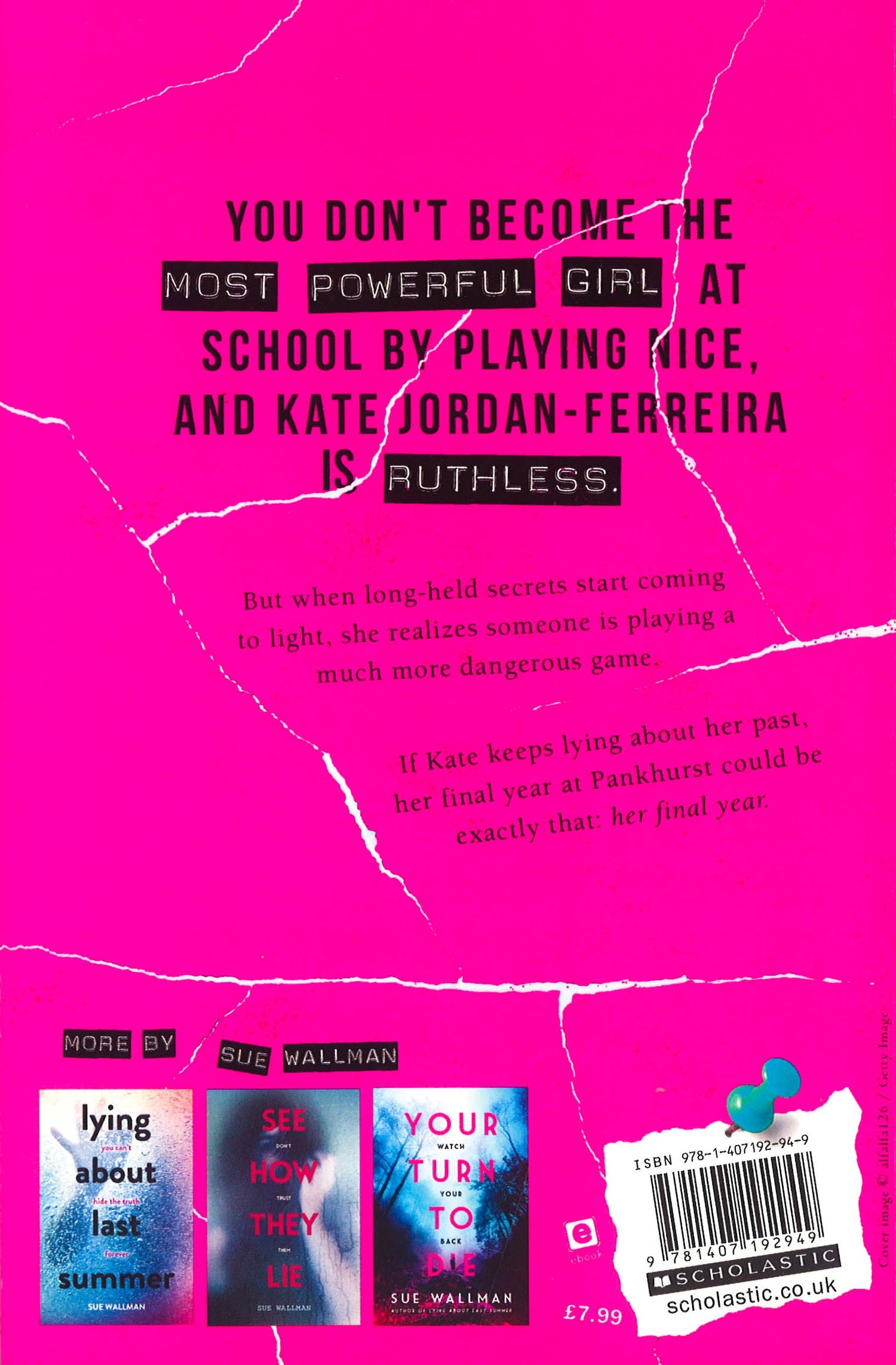 A new, chilling read from the award-winning author of Lying About Last Summer. Kate Jordan Ferreira knows that you don't become the most powerful girl at school by playing nice, and Kate's ruthless.But when other students start revealing long-held secrets anonymously, she realizes someone is playing a much more dangerous game - and they know too much about Kate's past. If she doesn't figure out who's behind it all soon, her final year at Pankhurst could be exactly that: her final year. Sue Wallman is one of the UK's top thriller writers for teens. Her books include Lying About Last Summer, See How They Lie and Your Turn to Die.