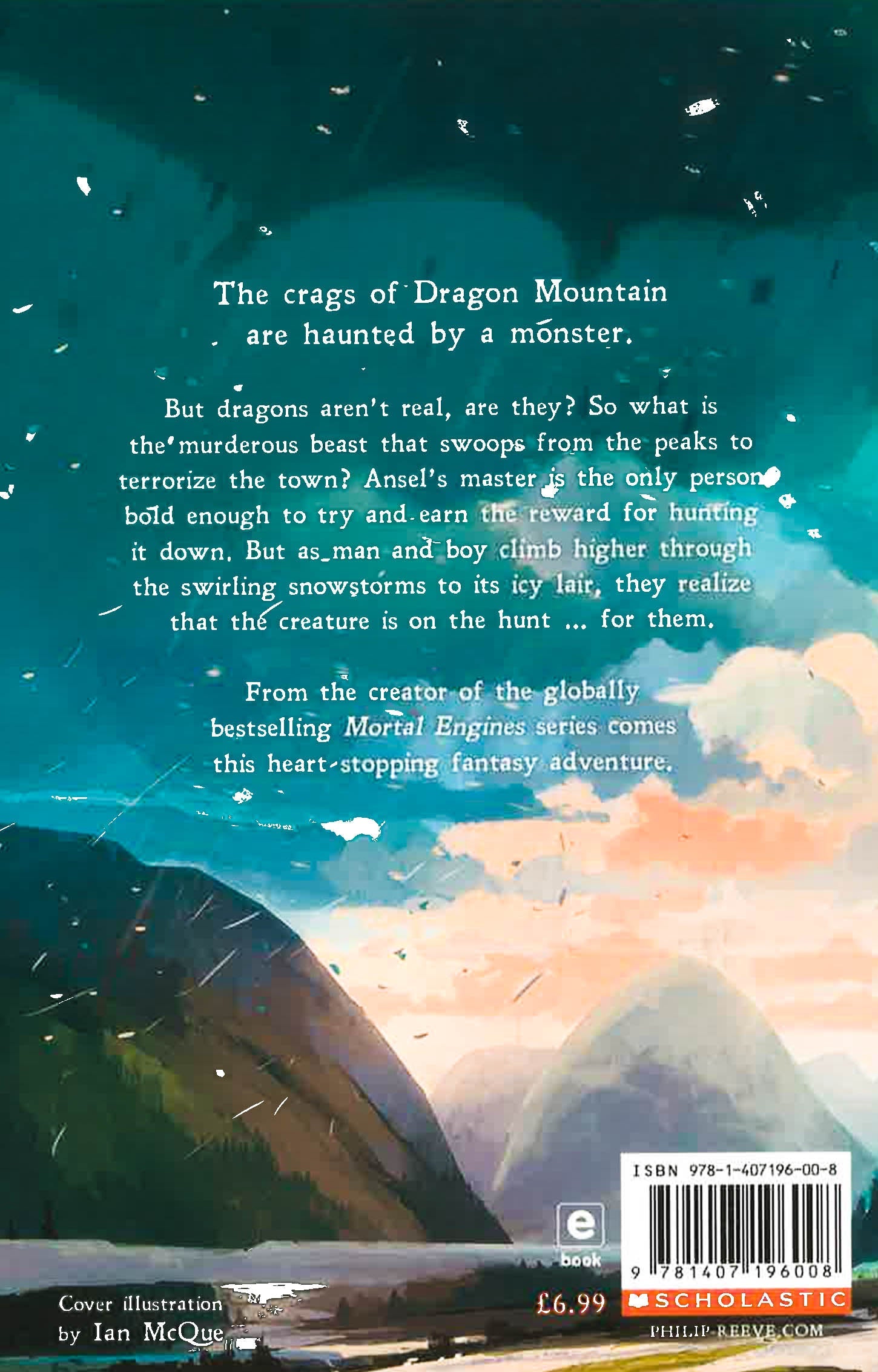 A dragon story with a brilliant twist from multi award-winning writer, PHILIP REEVE. Ansel's new master slays dragons for a living. He says he's hunted the monstrous worms all over Christendom and has the scars to prove it. But is Brock just a clever trickster in shining armour? Ansel is sure there are no such things as dragons. So what is the man-eating creature that makes its lair in the crags of Dragon Mountain? Ansel and Brock must climb the ice face to discover the terrifying truth.