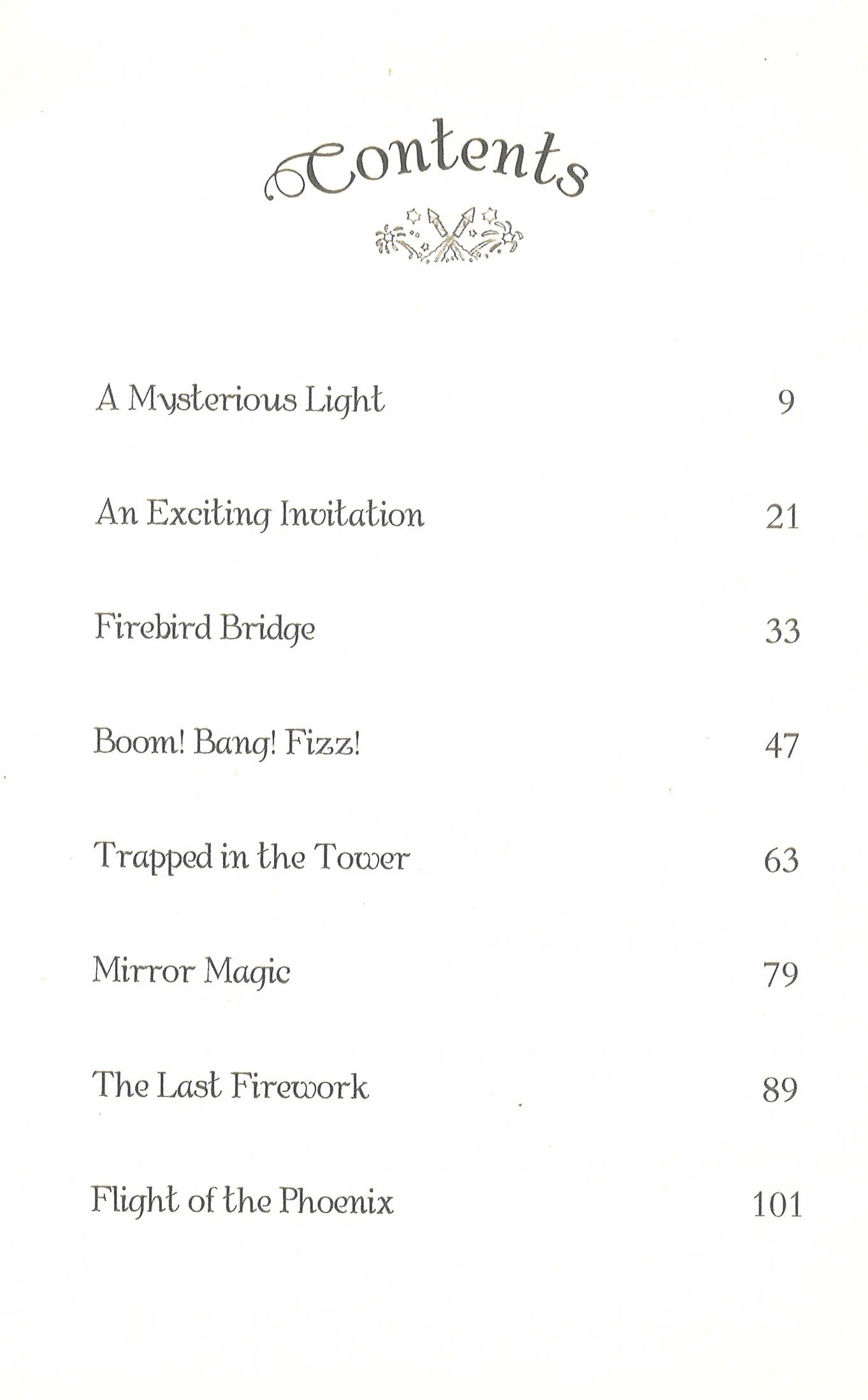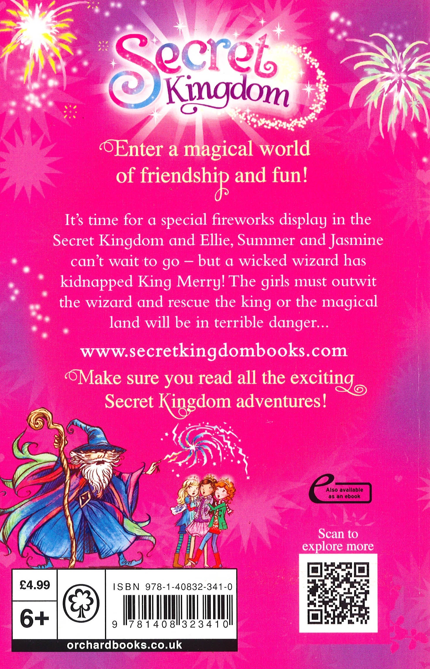 Wicked Queen Malice has cast a spell on Summer's storybook and unleashed all the fairytale baddies into the Secret Kingdom. Ellie, Summer and Jasmine are excited about attending the annual Phoenix Festival fireworks display, but when they get there they discover that a nasty wizard is controlling the fireworks - and he's kidnapped King Merry! Can the girls rescue their friend and get the wizard back in the book?