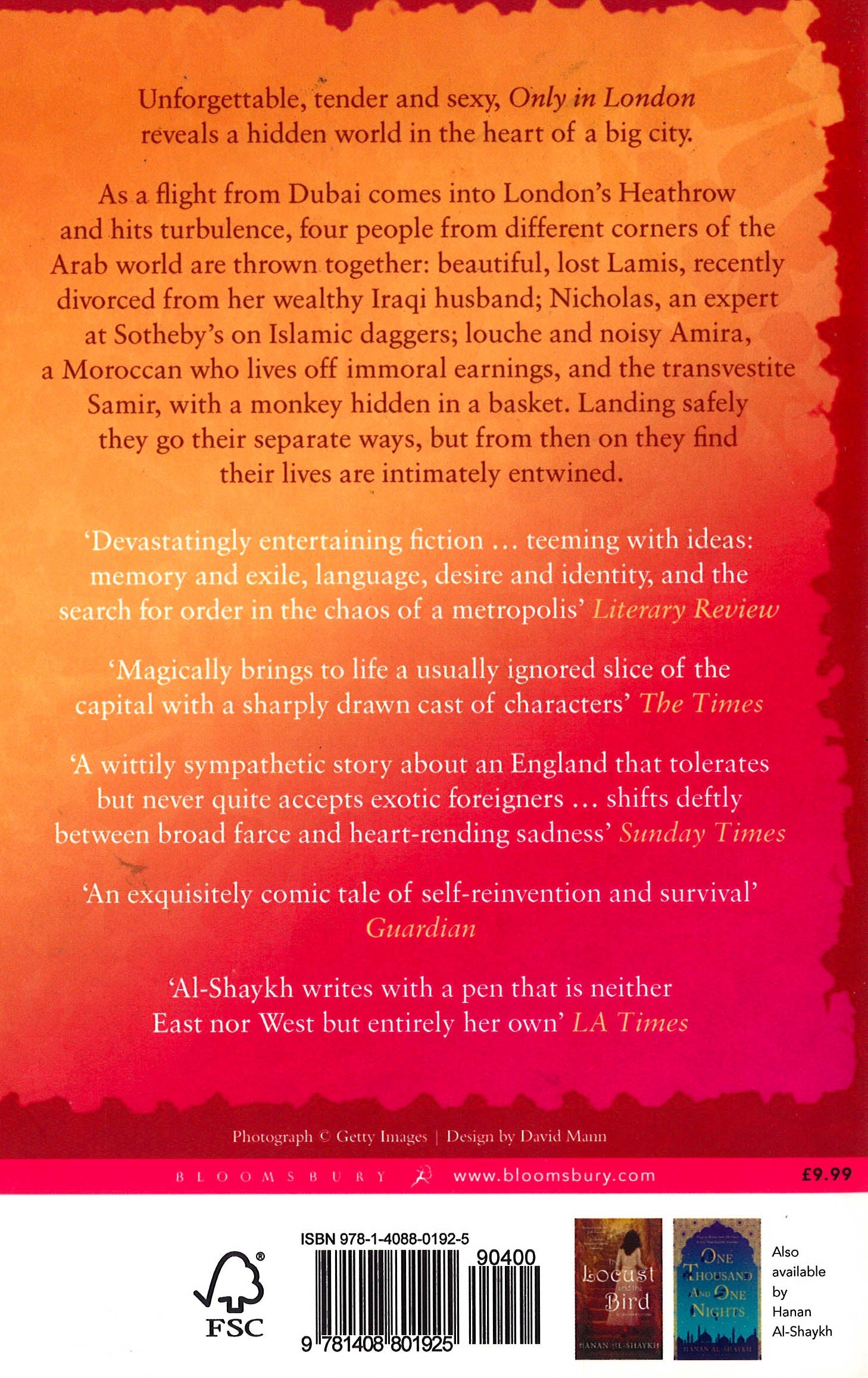 As a flight from Dubai comes into London's Heathrow and hits turbulence, four people from different corners of the Arab world are thrown together: beautiful, lost Lamis, recently divorced from her wealthy Iraqi husband; Nicholas, an expert at Southeby's on Islamic daggers; louche and noisy Amira, a Moroccan who lives off immoral earnings and the transvestite Samir, with a monkey hidden in a basket. Landing safely they go their separate ways, but from then on they find their lives are intimately entwined. ONLY IN LONDON is a funny, tender and sexy novel that uncovers a unique world in the heart of a big city.
