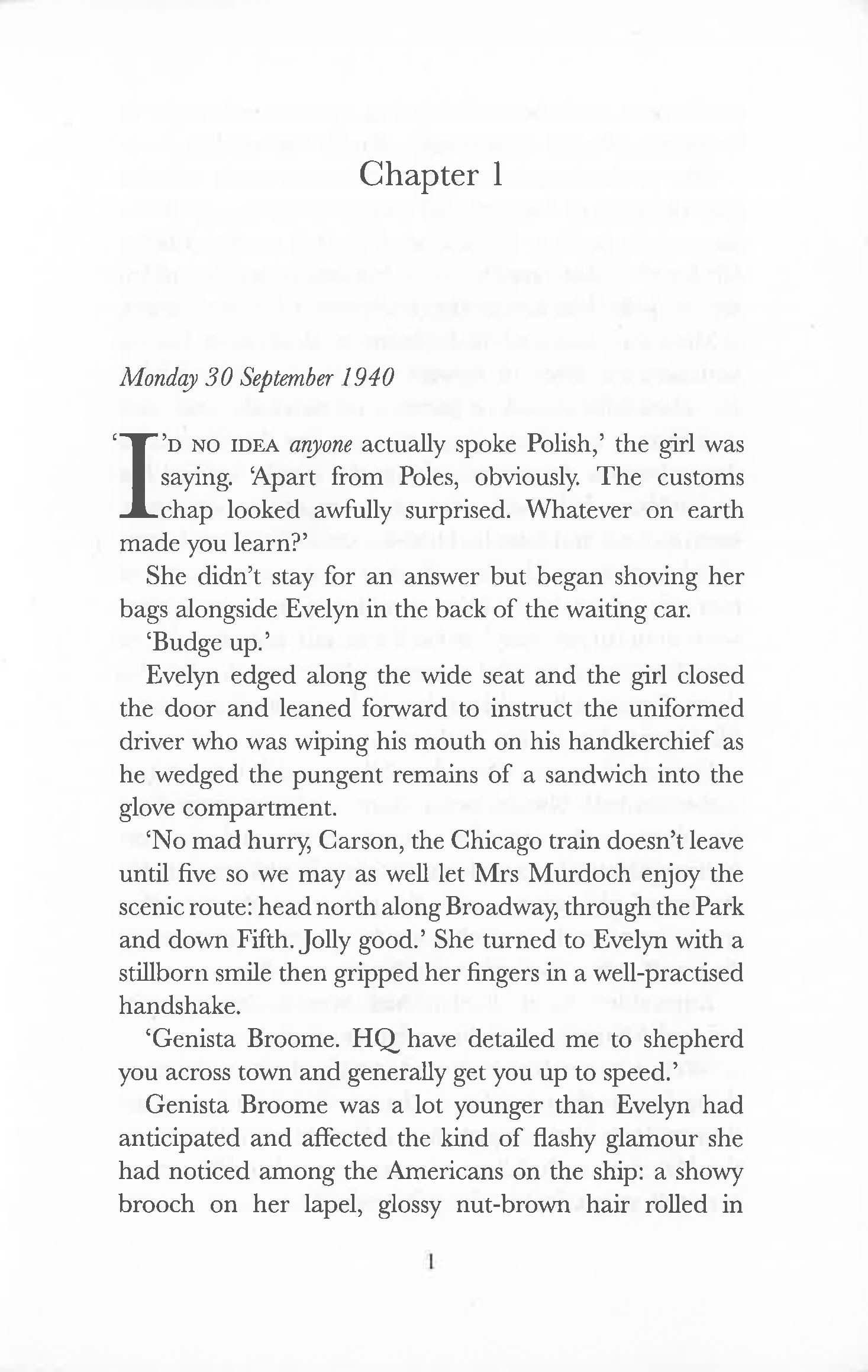 It is September 1940 and Evelyn Murdoch, a translator from the Postal Censorship department, is uprooted from her home in wartime Woking and transferred to Hollywood. She is to assist a mysterious British agent in his attempts to outwit the Los Angeles German delegation and boost the British propaganda war effort.