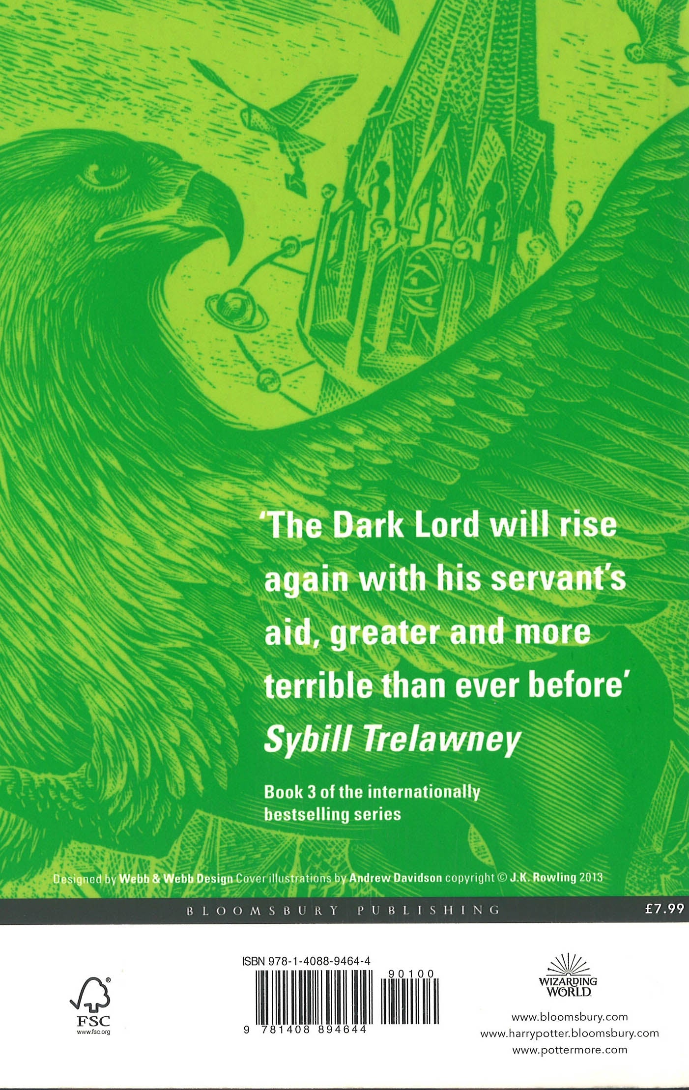 ‘The Dark Lord will rise again with his servant’s aid, greater and more terrible than ever before’ Sybill Trelawney Harry Potter is lucky to reach the age of thirteen, since he has survived the murderous attacks of the feared Dark Lord on more than one occasion. But his hopes for a quiet school term concentrating on Quidditch are dashed when a maniacal mass-murderer escapes from Azkaban, pursued by the soul-sucking Dementors who guard the prison. It’s assumed that Hogwarts is the safest place for Harry to be. But is it a coincidence that he can feel eyes watching him in the dark, and should he be taking Professor Trelawney’s ghoulish predictions seriously? These adult editions have been stylishly redesigned to showcase Andrew Davidson’s beautiful woodcut cover artwork.