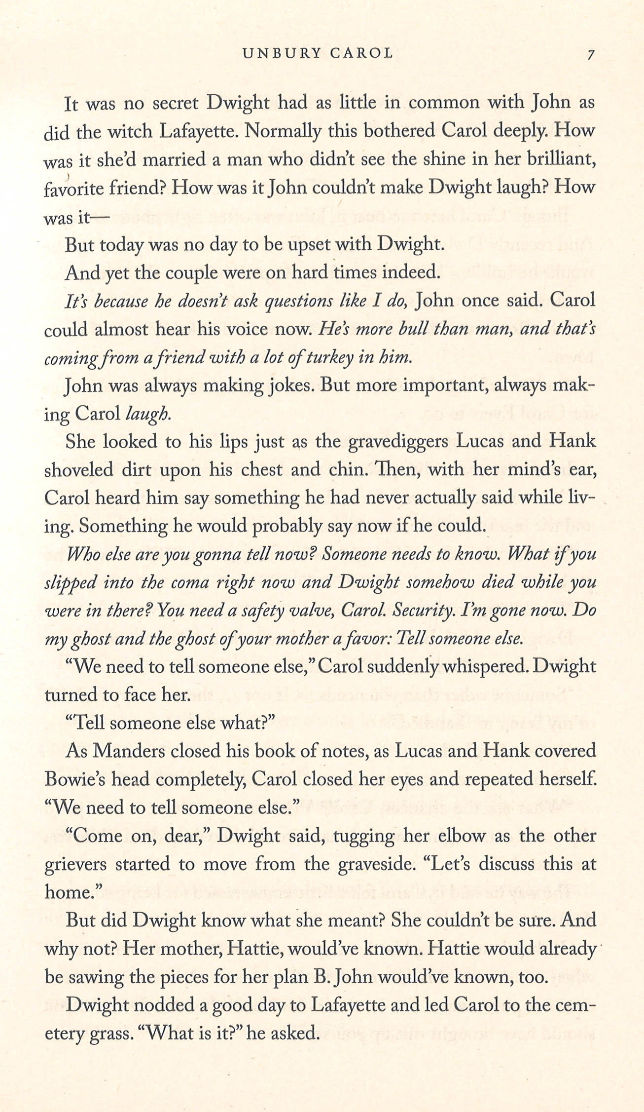 And all the while, Carol is a prisoner in her own body. hearing her funeral plans,