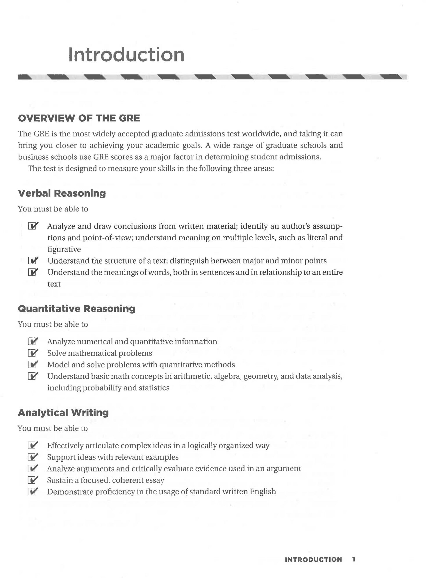 - A thorough introduction that provides an overview of every section of the exam, information about scoring, descriptions of each GRE question type, plus tips and test-taking strategies for success