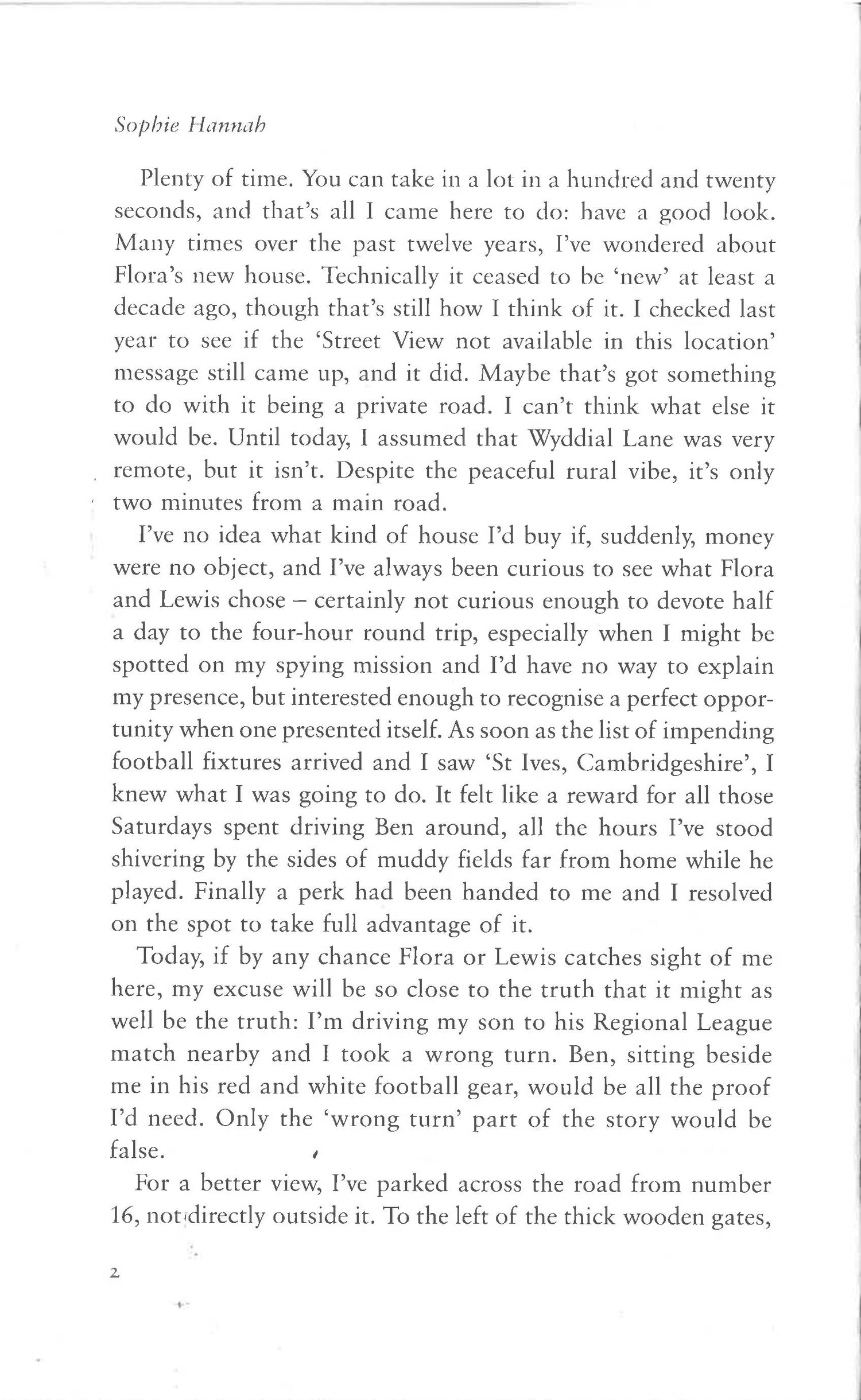 But she can't resist. She parks outside Flora's house and watches from across the road as Flora and her children, Thomas and Emily, step out of the car. Except...