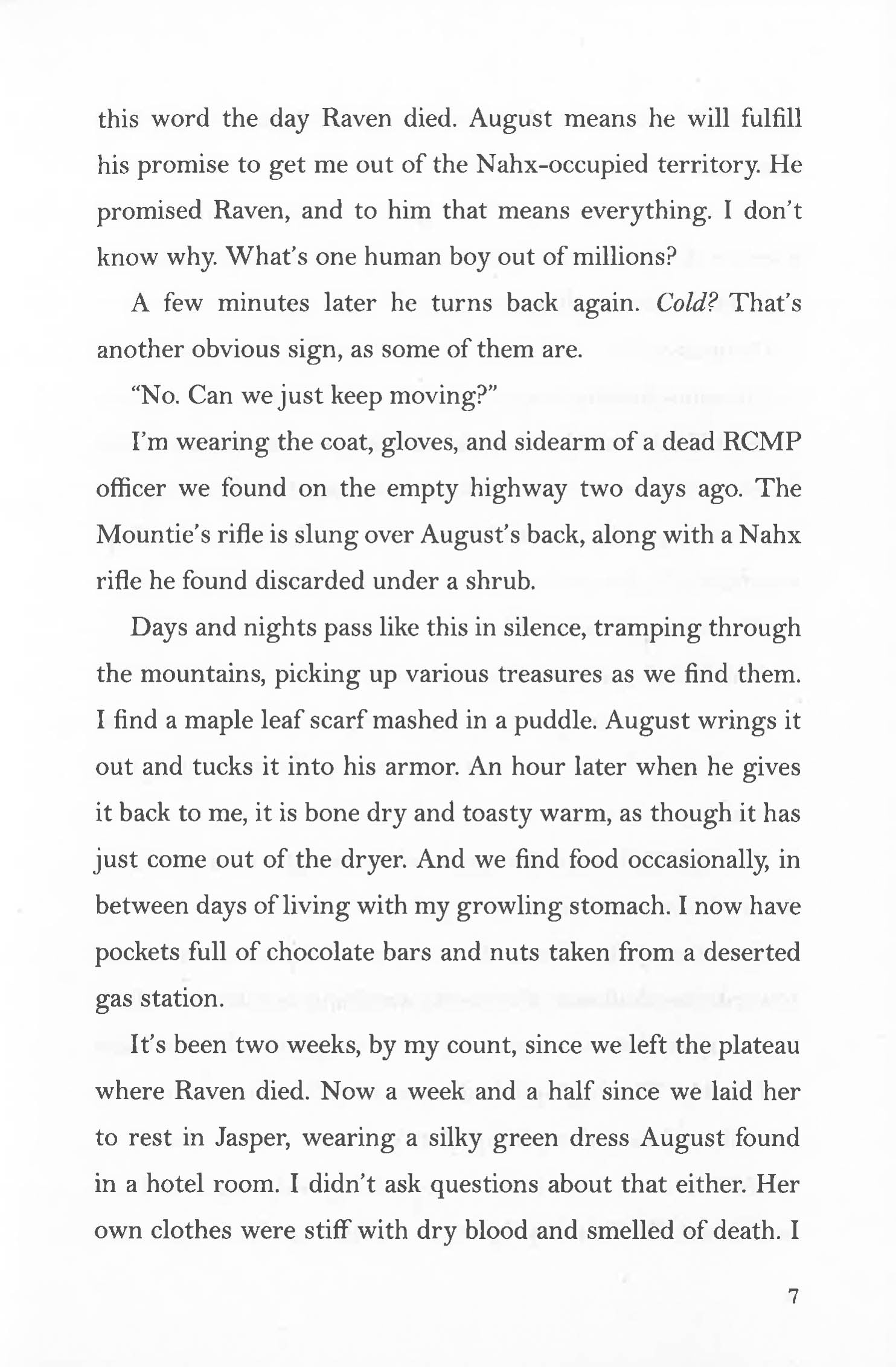 Raven remembers dying in the arms of August. She remembers the pain, and the way he cried as she faded away. But months later when she wakes up on a wide expanse of snowy sand dunes, shackled to a boy she thought was dead too, she has a lot of questions. What has happened to her and the other reanimated humans gathered on the dunes? What is the meaning of the Nahx ships that hover ominously above them? And most pressing of all, where is August, who promised to keep her safe?