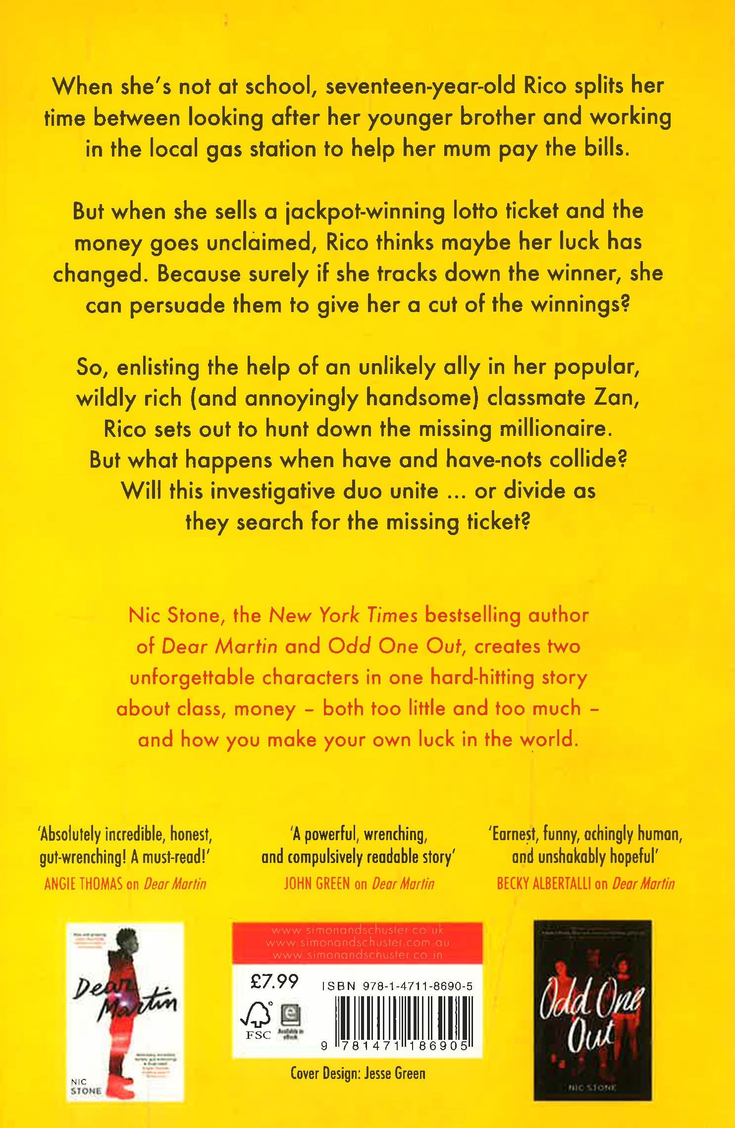 Nic Stone, the #1 New York Times bestselling author of Dear Martin, creates two unforgettable characters in one hard-hitting story about class, money - both too little and too much - and how you make your own luck in the world. The perfect next read for fans of Adam Silvera, Becky Albertalli and John Green.