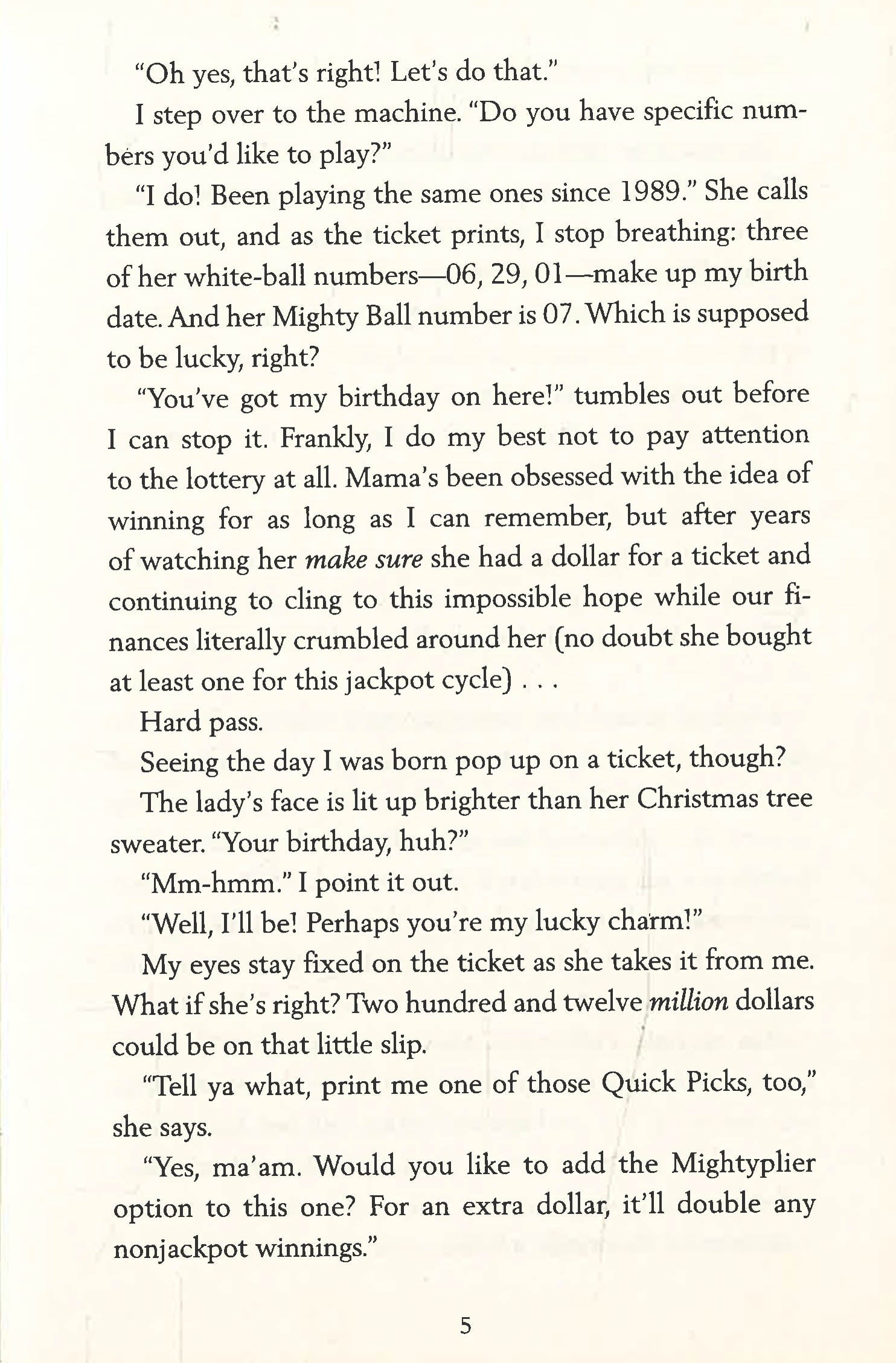 So when she sells a jackpot-winning lotto ticket and the money goes unclaimed, Rico thinks maybe her luck has changed. If she can find the ticket holder and reunite them with the cash, hopefully she will get a cut of the winnings. . . That is if she can avoid falling for the annoyingly handsome (and filthy rich) boy she roped into helping her with the hunt.