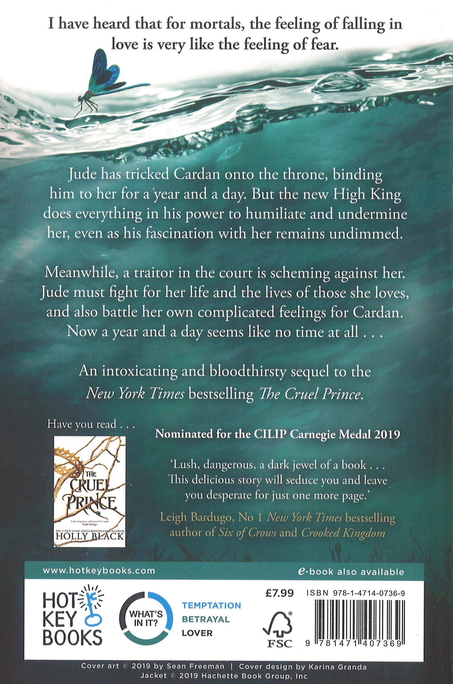Second in the bestselling Folk of the Air trilogy. This novel and the sequel The Queen of Nothing - are the winners of/won the Goodreads YA Best Fantasy in 2019 and 2020. An intoxicating and bloodthirsty sequel to the New York Times bestselling The Cruel Prince., nominated for the CILIP CARNEGIE MEDAL 2019. 'Holly Black is the Faerie Queen' - Victoria Aveyard I have heard that for mortals, the feeling of falling in love is very like the feeling of fear. Jude has tricked Cardan onto the throne, binding him to her for a year and a day. But the new High King does everything in his power to humiliate and undermine her, even as his fascination with her remains undimmed. Meanwhile, a traitor in the court is scheming against her. Jude must fight for her life and the lives of those she loves, all while battling her own complicated feelings for Cardan. Now a year and a day seems like no time at all . . .