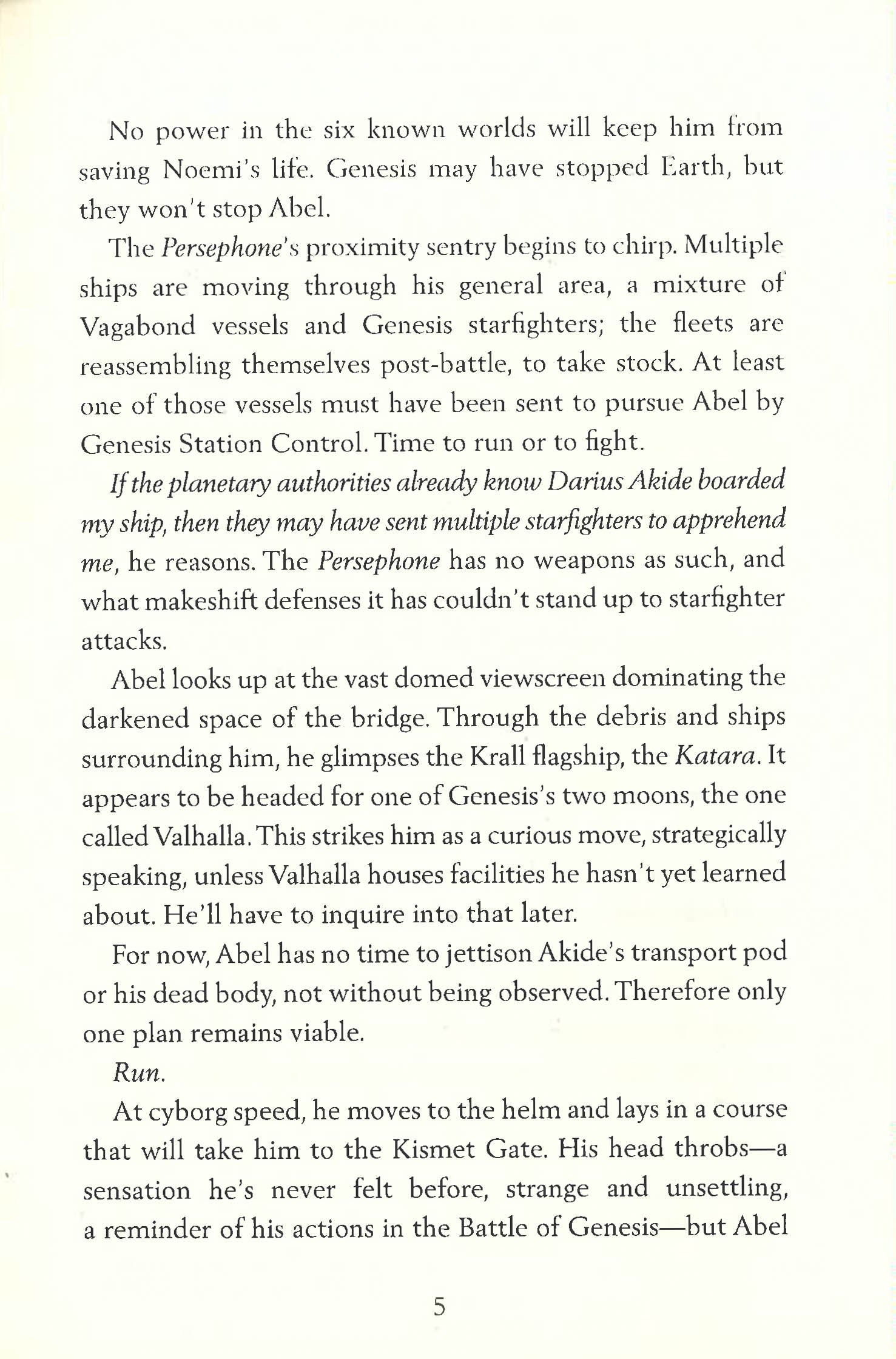 Hunted and desperate, Abel only has one mission left that matters: save Noemi Vidal at all cost. But to do that, he not only has to escape the rallied forces of Genesis, he also must bargain with the one person in the galaxy who still has the means to destroy him: the daughter of his creator.