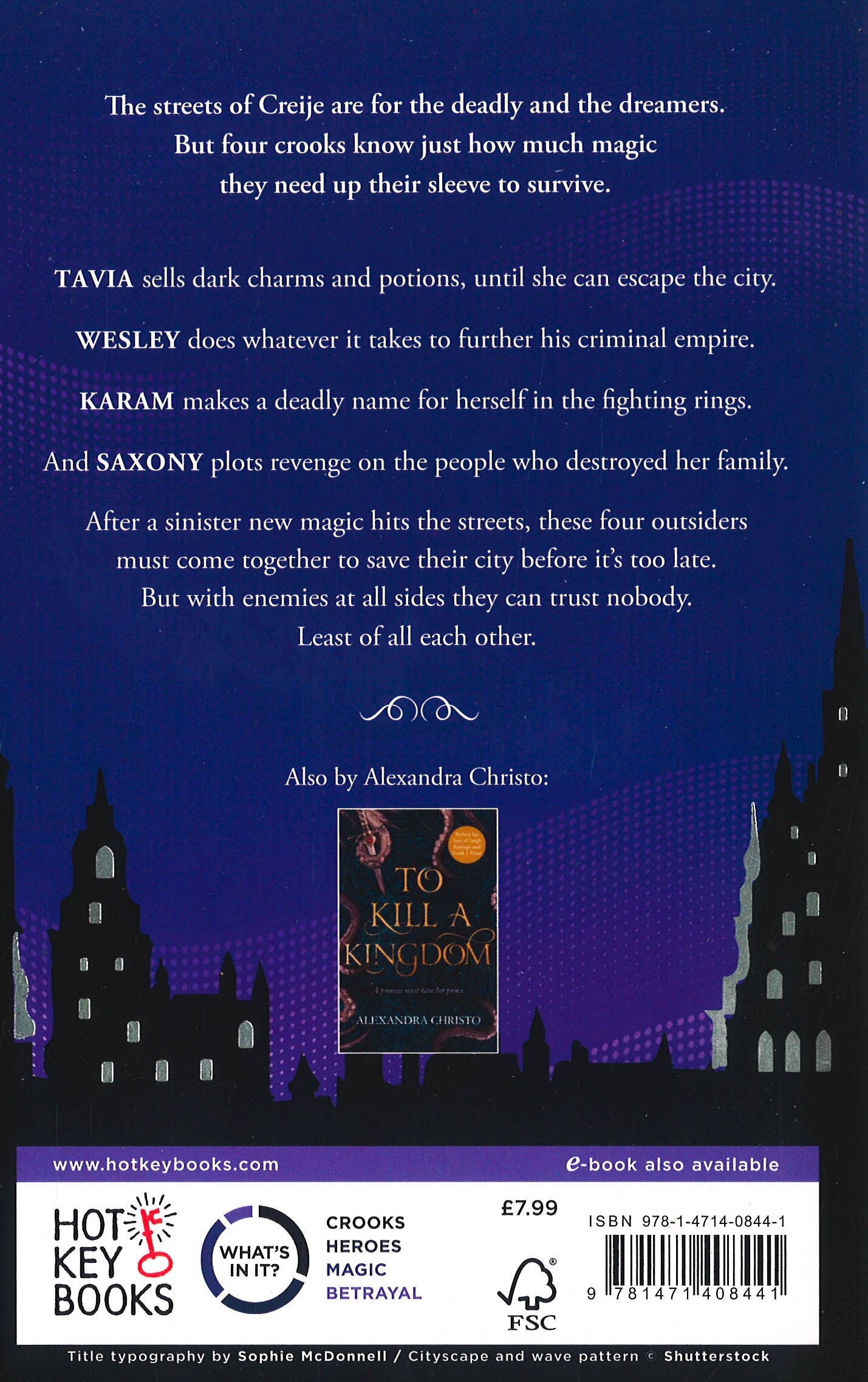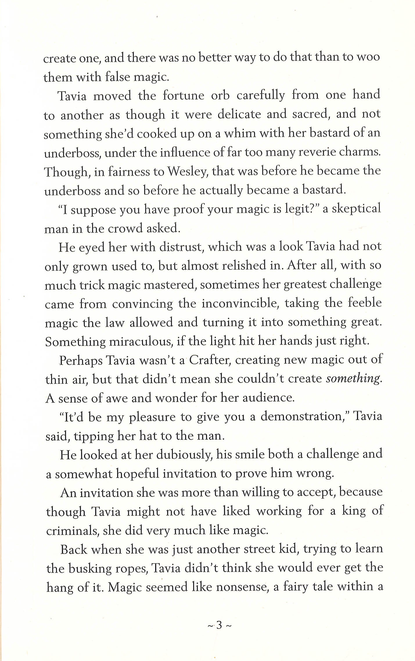Magic rules the city of Creije Capital and Tavia Syn knows just how many tricks she needs up her sleeve to survive. Selling dark magic on the streets for her kingpin, she keeps clear of other crooks, counting the days until her debt is paid and she can flee her criminal life.