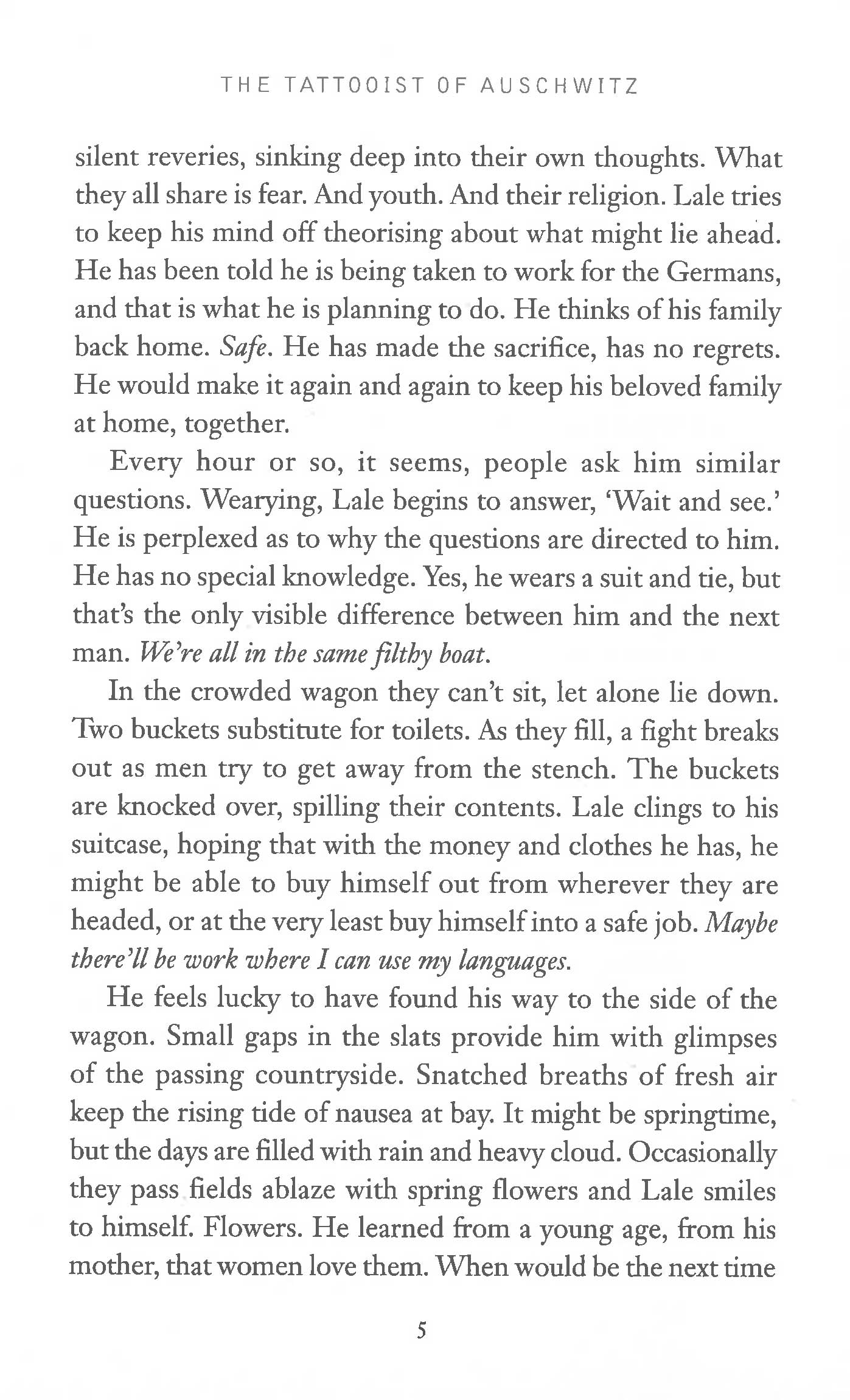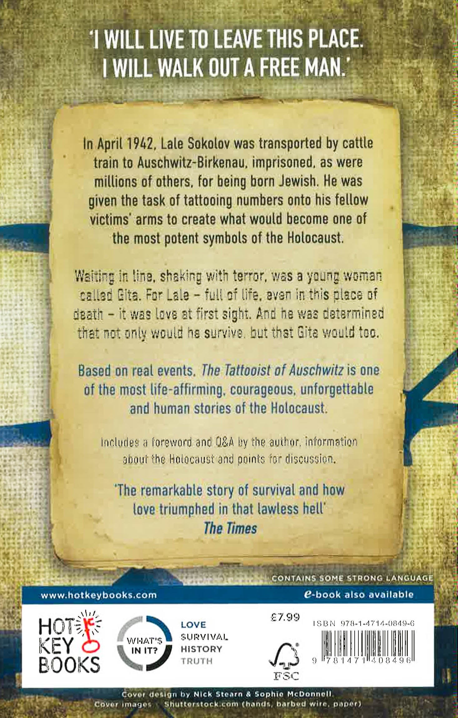 Young Adult edition - including new foreword and Q+A by the author plus further additional material The incredible bestselling true story. For readers of The Boy in the Striped Pyjamas and The Diary of Anne Frank Heart-breaking - a tale of love and survival amidst the horrors of Auschwitz Human - the real story behind one of the most potent symbols of the Holocaust - the blue numbers tattooed on prisoners' arms Inspirational - the very best of humanity in the very worst of circumstances Unforgettable - a story untold for over seventy years is finally shared Life-affirming - one man's determination to survive and live a full life with the woman he loved Fully verified - Lale Sokolov's background and story has been fact-checked against all available documentary evidence The Story The Tattooist of Auschwitz is based on the true story of Lale and Gita Sokolov, two Slovakian Jews who survived Auschwitz. When Lale, given the job of tattooing the prisoners, saw Gita waiting in line, it was love at first sight. In that moment he determined to keep them both alive. This is a story of hope and of courage.