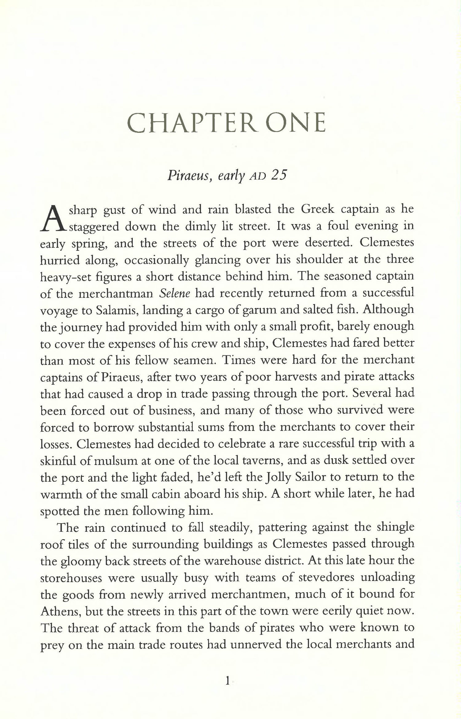 It is AD 25. Pirate ships strike terror in the hearts of those who brave the seas of the Roman Empire. When young Telemachus gets the chance to join the crew of the merchant ship Selene, he's delighted to escape the rough streets of Piraeus. He knows little of the dangers of life at sea. And even past hardship has not prepared him for the terror on board when a pirate ship appears on the horizon . . . The fight is bloody, but the result is never in doubt. Then the victorious pirate chief, Bulla, offers the beaten men a cruel choice: join us, or die. After surviving a brutal initiation rite, Telemachus impresses his new captain with his resourcefulness and strength, and swiftly rises through the pirate ranks. But dangerous rivals talk of mutiny and murder. While Prefect Canis, notorious commander of the imperial fleet, will stop at nothing to take control of the Adriaticum from the pirate brotherhood.Could Telemachus be the man to lead the pirate brotherhood and challenge Rome? PIRATA is also available in five ebook novella parts.