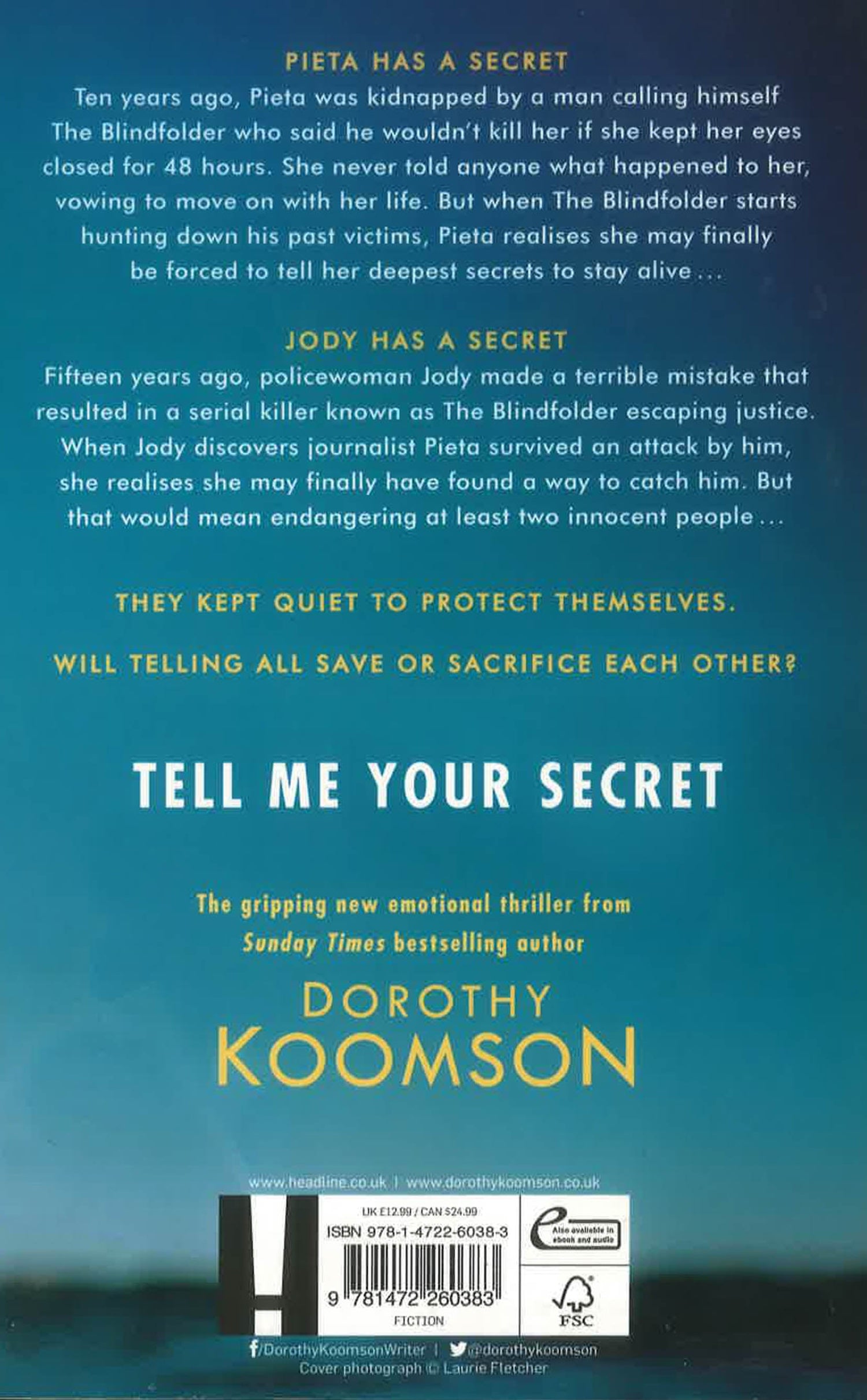 The gripping new emotional thriller from the Sunday Times bestselling author of THE ICE CREAM GIRL, MY BEST FRIEND'S GIRL and THE BRIGHTON MERMAID. Dorothy Koomson, 'Queen of the big reveal' (Sun), is back with a page-turner full of twists and turns that asks the question: what would you sacrifice in order to survive? Pieta has a secretTen years ago, Pieta was kidnapped from outside a London nightclub by a man who said he wouldn't kill her if she kept her eyes closed for 48 hours. Pieta survived the weekend but was left emotionally and physically scarred by the experience. Now living in Brighton, she is a mother and journalist with a good life - until she is tasked with interviewing Callie, a woman who has the same story and scars as she does. Pieta has never told anyone what she did to escape with her life but now she may have to...Jody has a secretFifteen years ago, policewoman Jody made a terrible mistake that resulted in a prolific serial killer known as The Blindfolder escaping justice. Only his newest victim, Callie, is willing to talk publicly about her ordeal. When Jody finds out journalist Pieta was also once kidnapped by him, she realises how she can catch him. But that would mean endangering at least two innocent people...Callie has a secretAs the newest victim of the man known as the Blindfolder, Callie knows all eyes are on her to tell her story and give the police the information they need to catch this man. But does Callie know more than she is willing to tell?They kept quiet to protect themselves.Will they tell all to save or sacrifice each other?