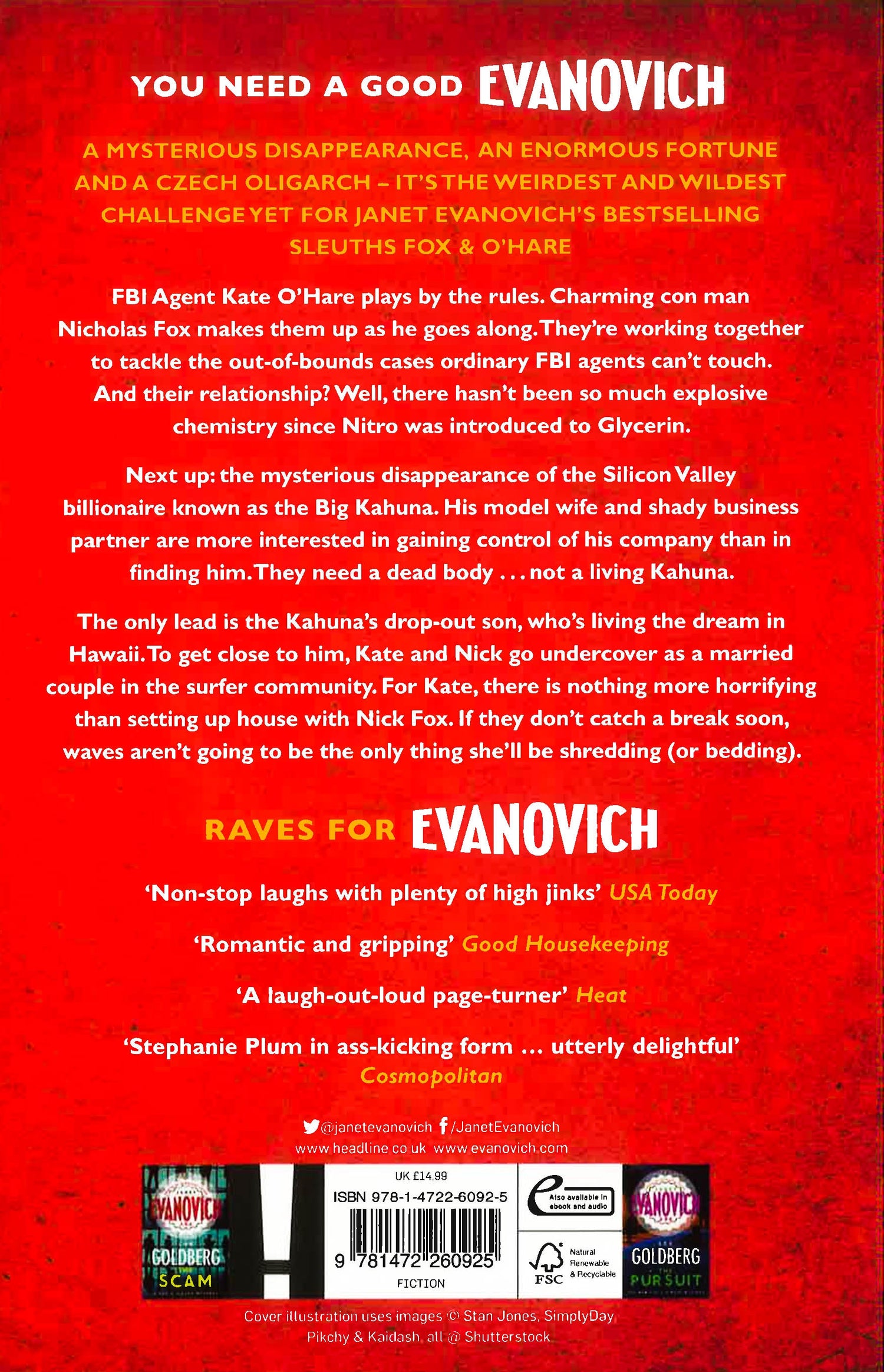 The New York Times bestseller!A mysterious disappearance, an enormous fortune and a Czech oligarch - it's the weirdest and wildest challenge yet for Janet Evanovich's bestselling sleuths Fox & O'Hare.FBI Agent Kate O'Hare plays by the rules. Charming con man Nicholas Fox makes them up as he goes along. They're working together to tackle the out-of-bounds cases ordinary FBI agents can't touch. Next up: the mysterious disappearance of the Silicon Valley billionaire known as the Big Kahuna. His model wife and shady business partner are more interested in gaining control of his company than in finding him. They need a dead body... not a living Kahuna.The only lead is the Kahuna's drop-out son, who's living the dream in Hawaii. To get close to him, Kate and Nick go undercover in the surfer community. For Kate, there is nothing more horrifying than setting up house with Nick Fox. If they don't catch a break soon, waves aren't going to be the only thing she'll be shredding (or bedding).