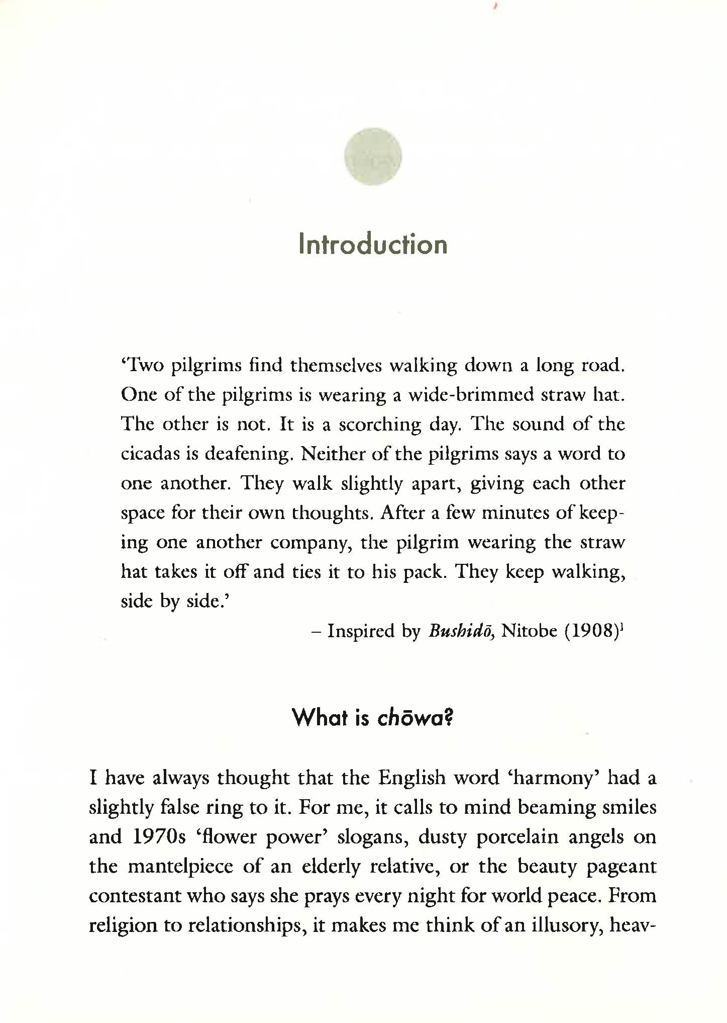 Chowa is a Japanese concept that is often translated as 'harmony', but more accurately means 'the search for balance'. Chowa is both a philosophy and a set of practices that can help us get to the heart of what is most important to us, and change our way of thinking about ourselves and others.