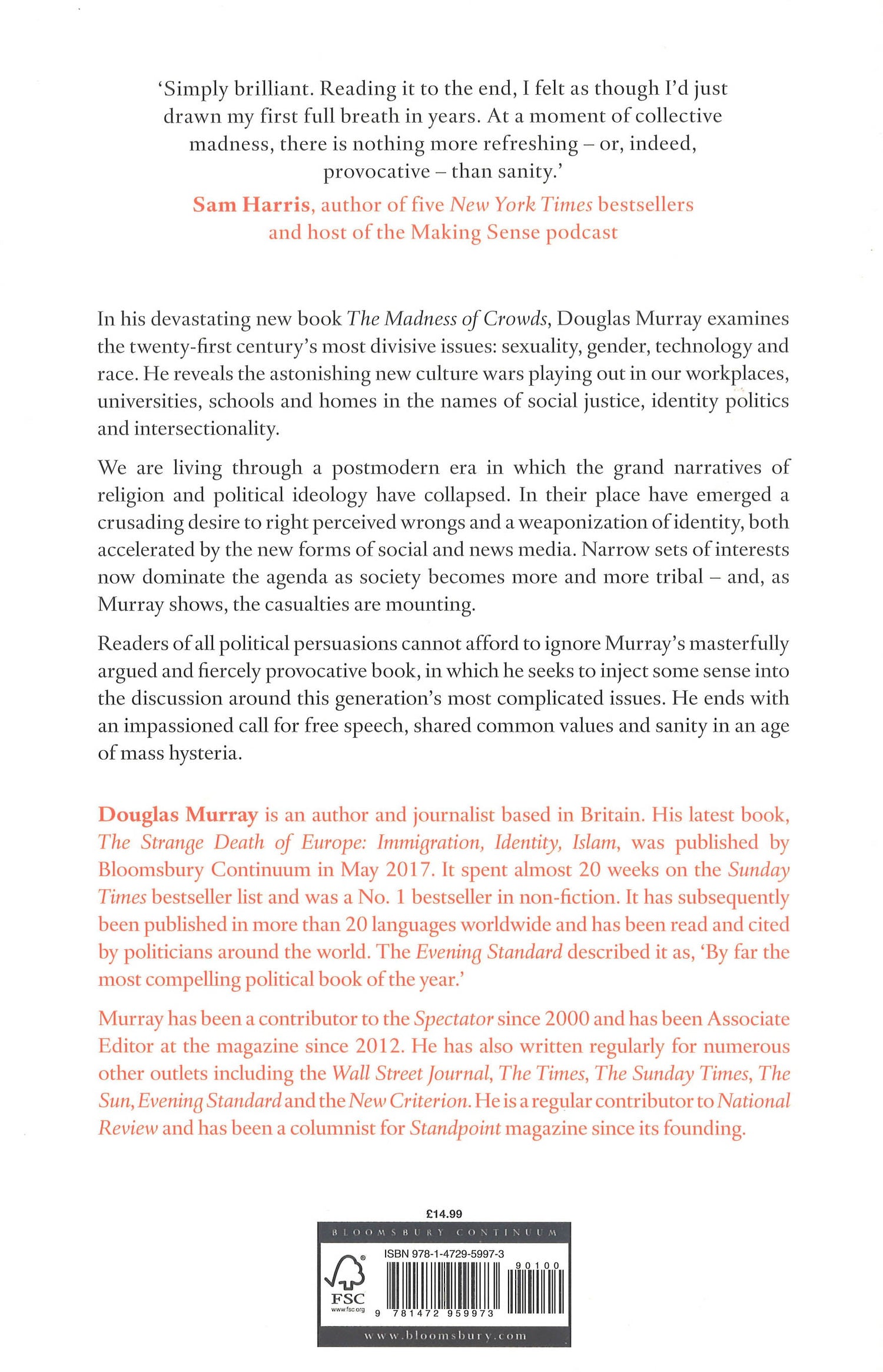 THE SUNDAY TIMES BESTSELLER A Times and Sunday Times Book of the Year 'Douglas Murray fights the good fight for freedom of speech ... A truthful look at today's most divisive issues' - Jordan B. Peterson '[Murray's] latest book is beyond brilliant and should be read, must be read, by everyone' - Richard Dawkins 'How can you not know about The Madness of Crowds? It's actually the book I've just finished. You can't just not read these books, not know about them.' - Tom Stoppard In his devastating new book The Madness of Crowds, Douglas Murray examines the twenty-first century's most divisive issues: sexuality, gender, technology and race. He reveals the astonishing new culture wars playing out in our workplaces, universities, schools and homes in the names of social justice, identity politics and 'intersectionality'. We are living through a postmodern era in which the grand narratives of religion and political ideology have collapsed. In their place have emerged a crusading desire to right perceived wrongs and a weaponization of identity, both accelerated by the new forms of social and news media. Narrow sets of interests now dominate the agenda as society becomes more and more tribal - and, as Murray shows, the casualties are mounting. Readers of all political persuasions cannot afford to ignore Murray's masterfully argued and fiercely provocative book, in which he seeks to inject some sense into the discussion around this generation's most complicated issues. He ends with an impassioned call for free speech, shared common values and sanity in an age of mass hysteria.