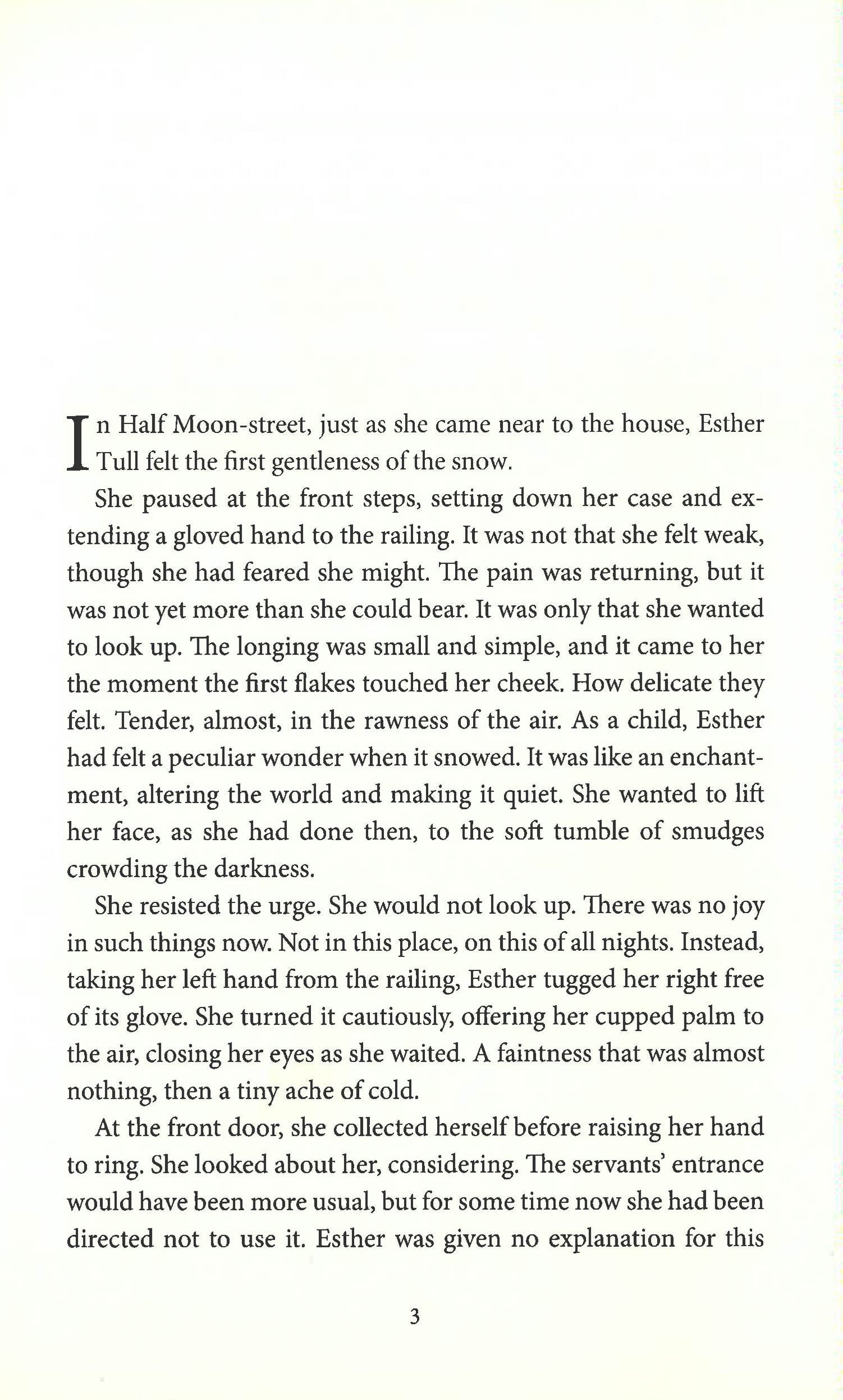 The snow is falling as a seamstress climbs onto a ledge above Mayfair, a mysterious message stitched into her own skin. It is falling as she steadies herself and closes her eyes.