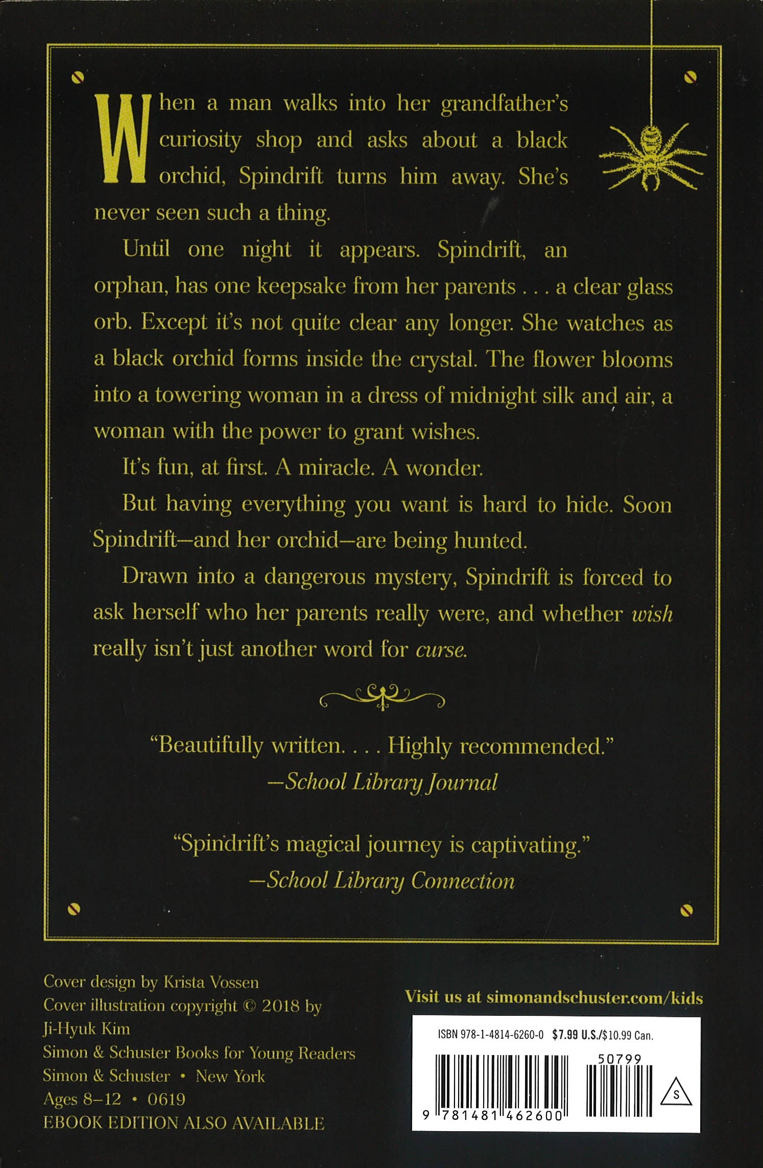 Until one night it appears. Spindrift, an orphan, has one keepsake from her parents...a clear glass orb. Except it's not quite clear anymore. She watches as a black orchid forms inside the crystal. Then the flower blooms into a towering woman in a dress of midnight silk and air, a woman with the power to grant wishes.