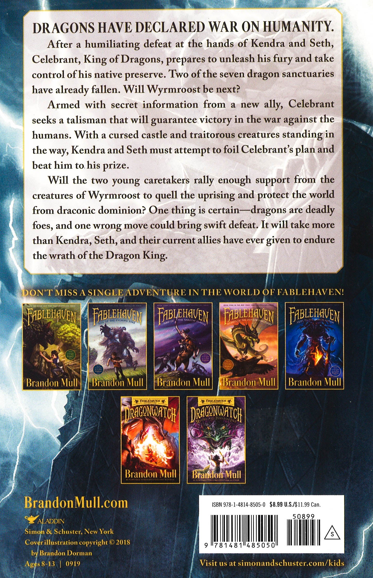However, the powerful stone is protected by a cursed castle. Upon entering the castle fortress, an unyielding power strips all magical beings of their power and forces Celebrant to take his human avatar form. Kendra and Seth must enter the cursed castle as well. The race is on. Will the two young caretakers rally enough support from the creatures of Wyrmroost against the greatest threat the magical community has faced in ages? Can they foil Celebrant's plan and beat him to the mighty dominion stone? Or will all hope be shattered by the wrath of the Dragon King?
