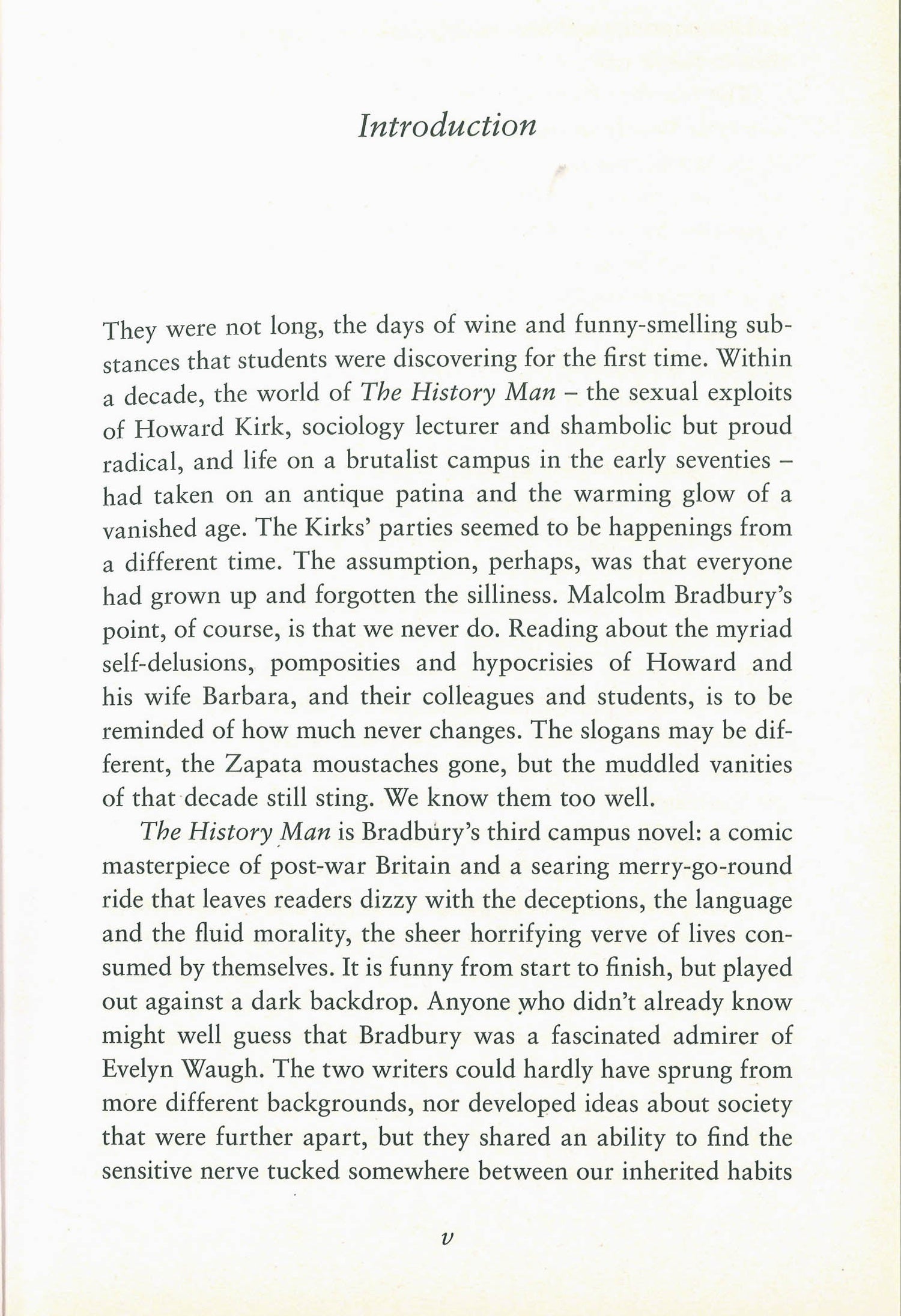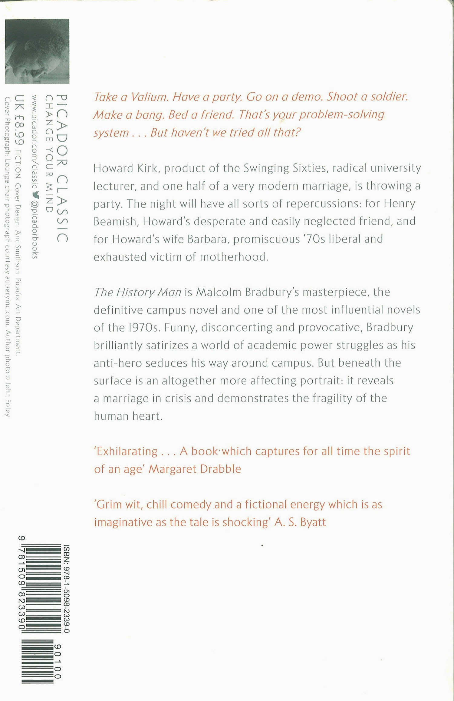 The History Man is Malcolm Bradbury's masterpiece, the definitive campus novel and one of the most influential novels of the 1970s. Funny, disconcerting and provocative, Bradbury brilliantly satirizes a world of academic power struggles as his anti-hero seduces his away around campus. But beneath the surface is an altogether more affecting portrait: it reveals a marriage in crisis and demonstrates the fragility of the human heart.