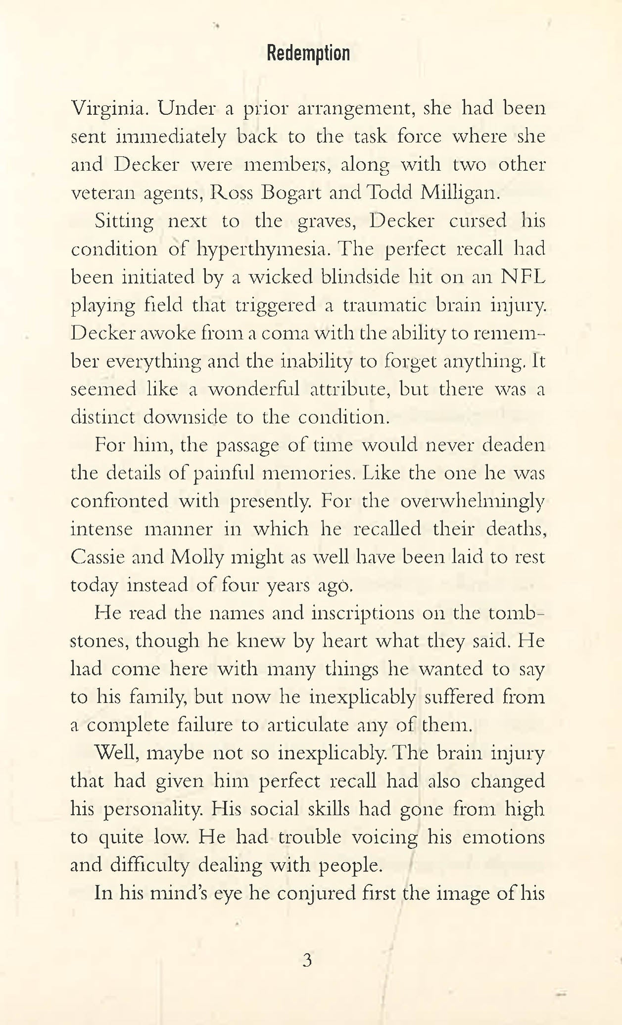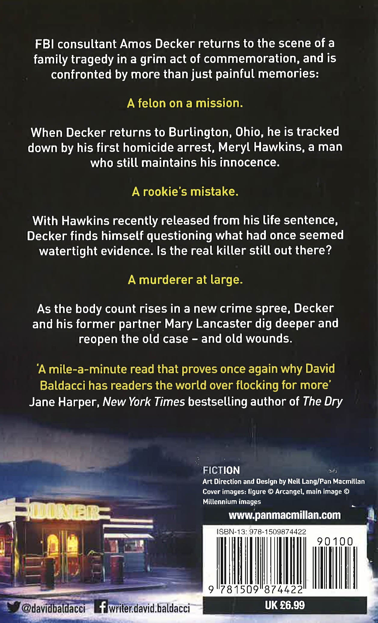 Amos Decker and his FBI partner Alex Jamison are visiting his hometown of Burlington, Ohio, when he's approached by an unfamiliar man. But he instantly recognizes the man's name: Meryl Hawkins. He's the first person Decker ever arrested for murder back when he was a young detective. Though a dozen years in prison have left Hawkins unrecognizably aged and terminally ill, one thing hasn't changed: He maintains he never committed the murders. Could it be possible that Decker made a mistake all those years ago? As he starts digging into the old case, Decker finds a startling connection to a new crime that he may be able to prevent, if only he can put the pieces together quickly enough...