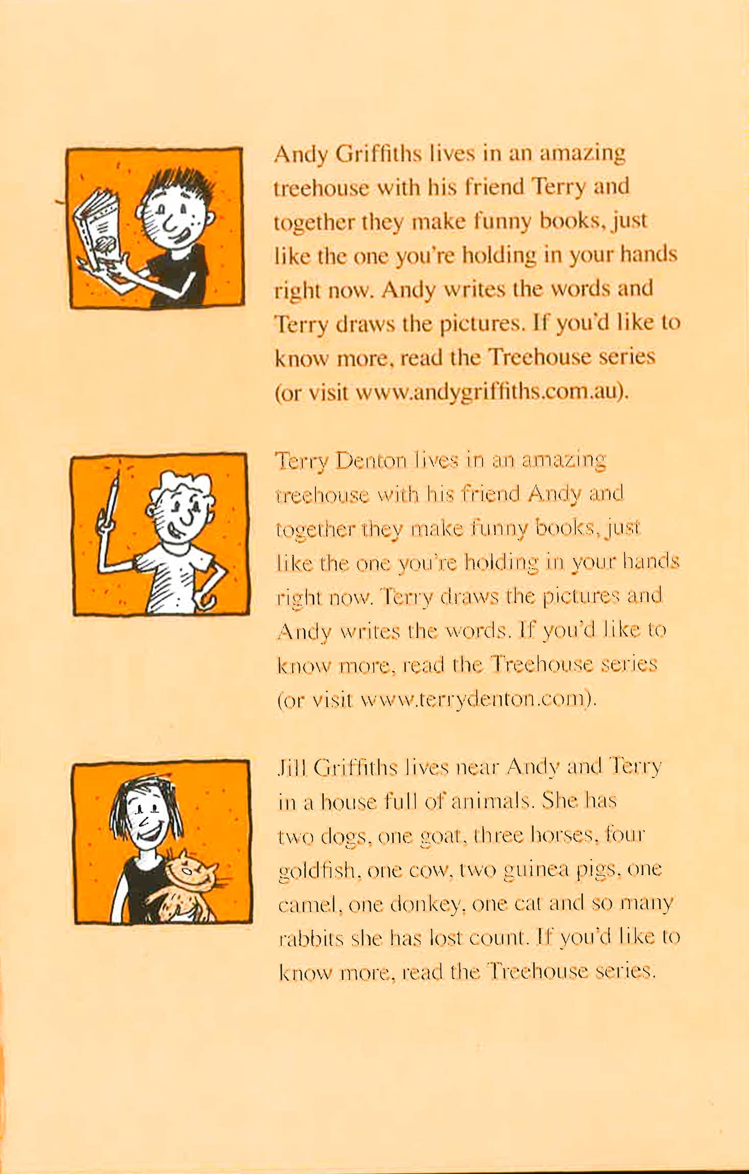 Grab your Treehouse passport and jump into the crazy world of the bestselling Treehouse series by Andy Griffiths and Terry Denton. In this activity book, join Andy, Terry and Jill for an adventure like no other as they combine animals, create magical kingdoms, time-travel, solve crosswords, search for words, colour and scribble, spot the difference, find the odd one out, crack codes and so much more!