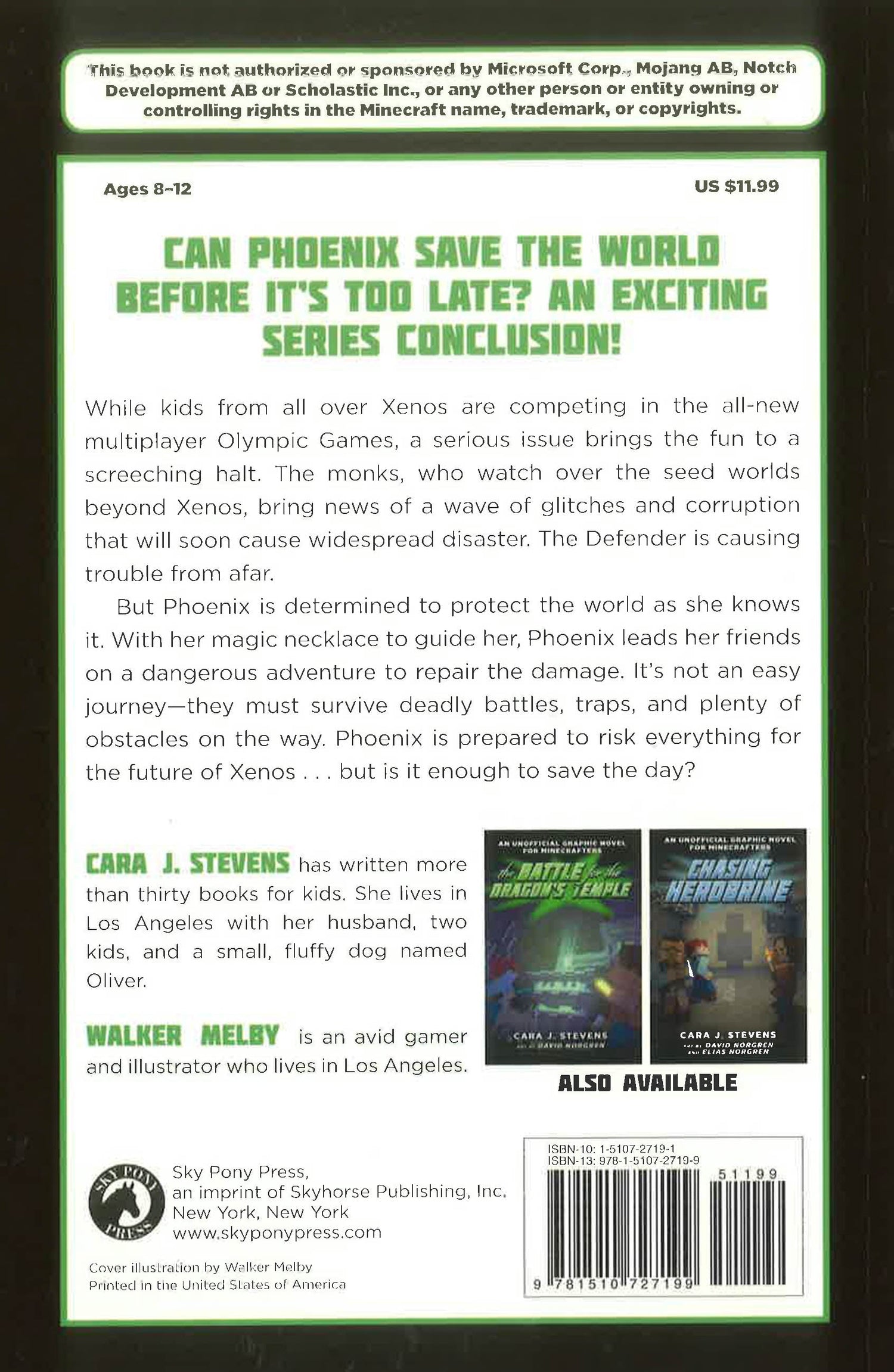 For boys and girls who love Minecraft, a graphic novel adventure that uses over 750 images to transport young readers into the world of the game they love most.While kids from all over Xenos are competing in the all new multiplayer Olympic Games, a serious issue brings the fun to a screeching halt. The monks, who watch over the seed worlds beyond Xenos, bring news of a wave of glitches and corruption that will soon cause widespread disaster. The Defender is causing trouble from afar.But Phoenix is determined to protect the world as she knows it. With her magic necklace to guide her, Phoenix leads her friends on a dangerous adventure to repair the damage. It's not an easy journey -they must survive deadly battles, traps, and plenty of obstacles on the way. Phoenix is prepared to risk everything for the future of Xenos . . . but is it enough to save the day?Fans of Minecraft won't want to miss this exciting conclusion to the series that began with Quest for the Golden Apple!