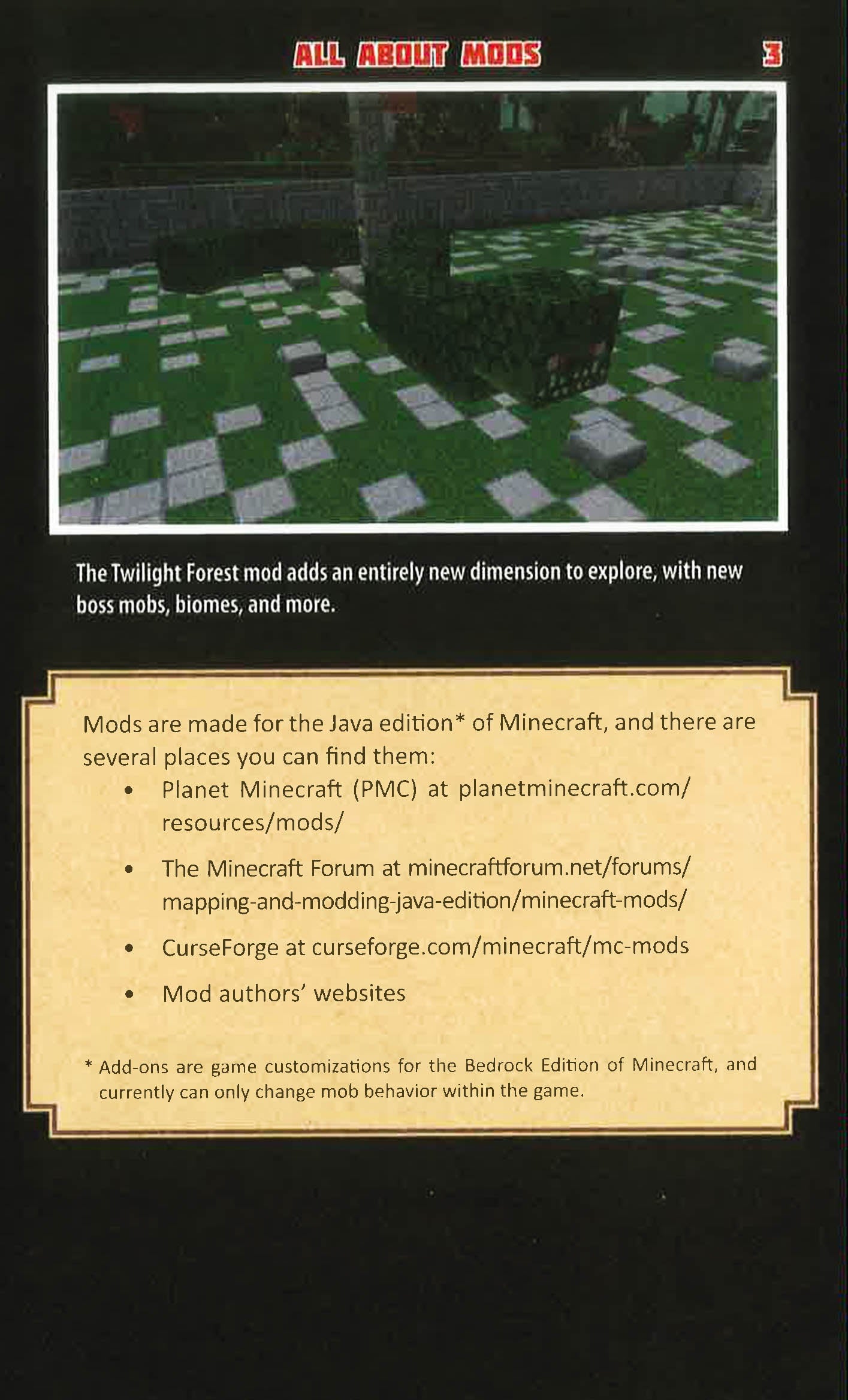 Change the rules of your world with each mod you add-anything is fair game! This book explores today's range of modded Minecraft play, from the must-haves to the fanciful. Written for seven- to twelve-year-old Minecrafters and packed with over one hundred colorful screenshots, this is the ultimate guide on Minecraft mods. Keep your game new and exciting with all these expert tips and tricks.