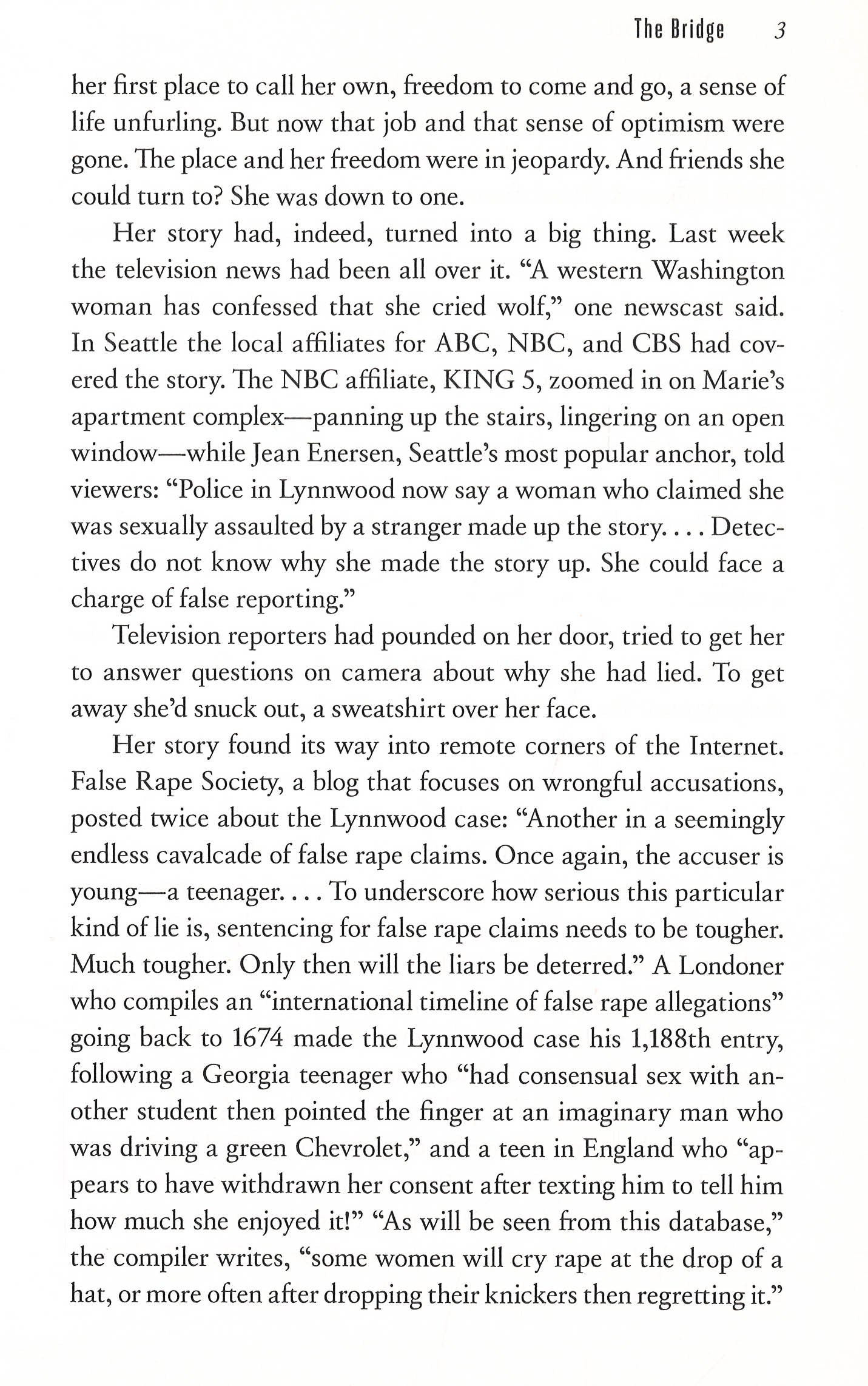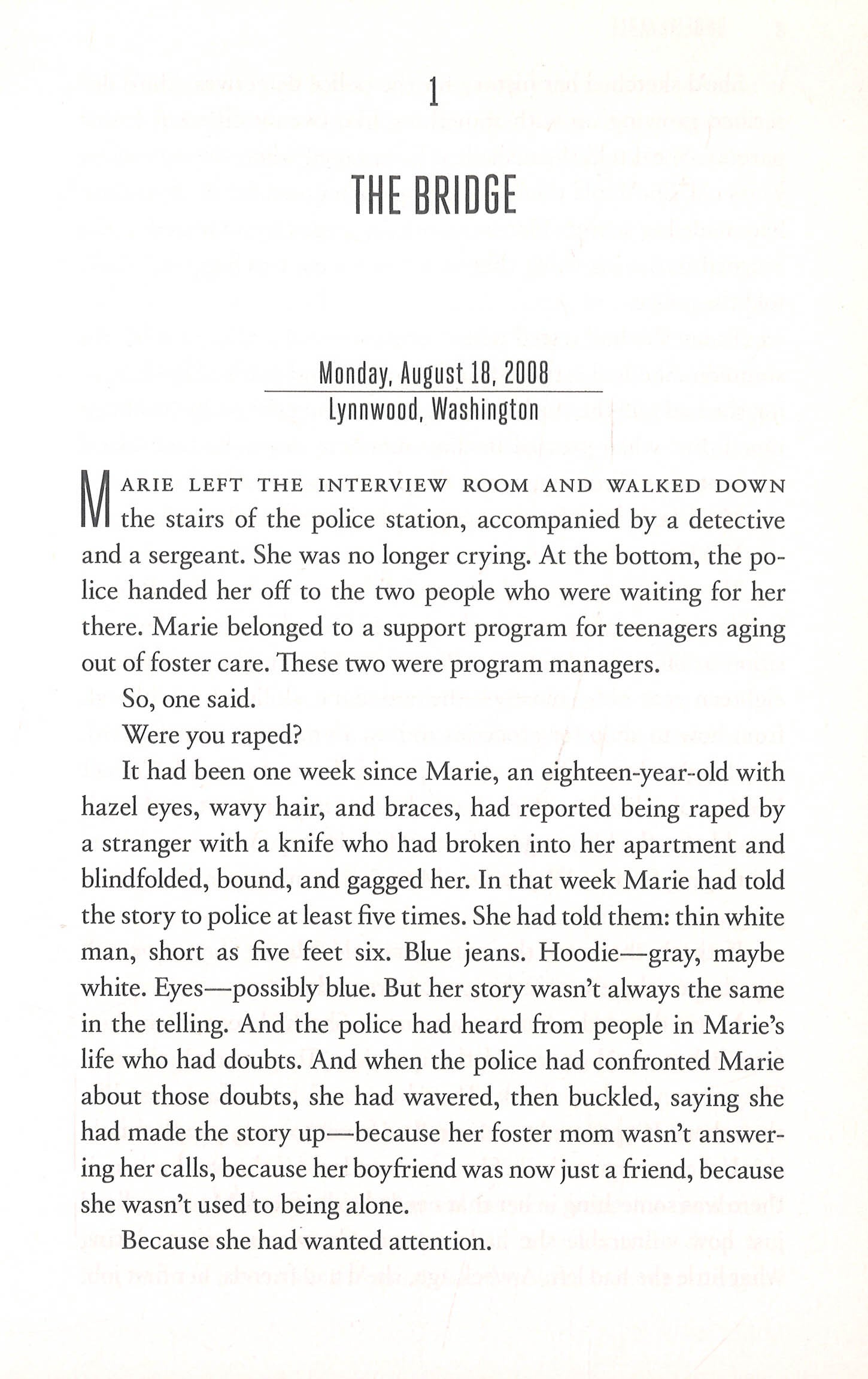 On August 11, 2008, eighteen-year-old Marie reported that a masked man broke into her apartment near Seattle, Washington, and raped her. Within days police and even those closest to Marie became suspicious of her story. The police swiftly pivoted and began investigating Marie. Confronted with inconsistencies in her story and the doubts of others, Marie broke down and said her story was a lie—a bid for attention. Police charged Marie with false reporting, and she was branded a liar.