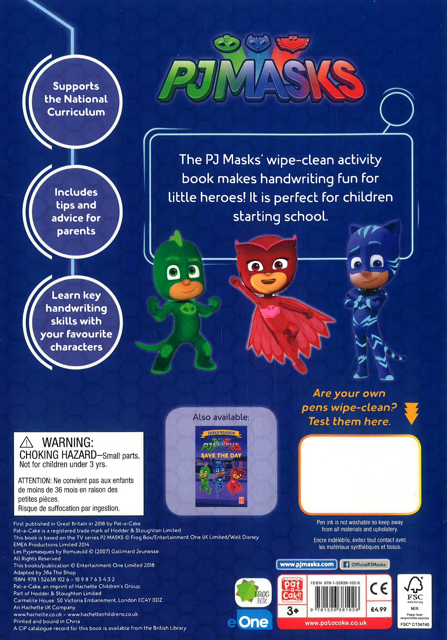 Come with Catboy, Owlette and Gekko on this first alphabet adventure, with letters to trace, wipe and trace again! Packed with favourite heroes, pesky villains and super-cool super vehicles, this activity book makes learning to write easy peasy lizard squeezy, and lots of fun!