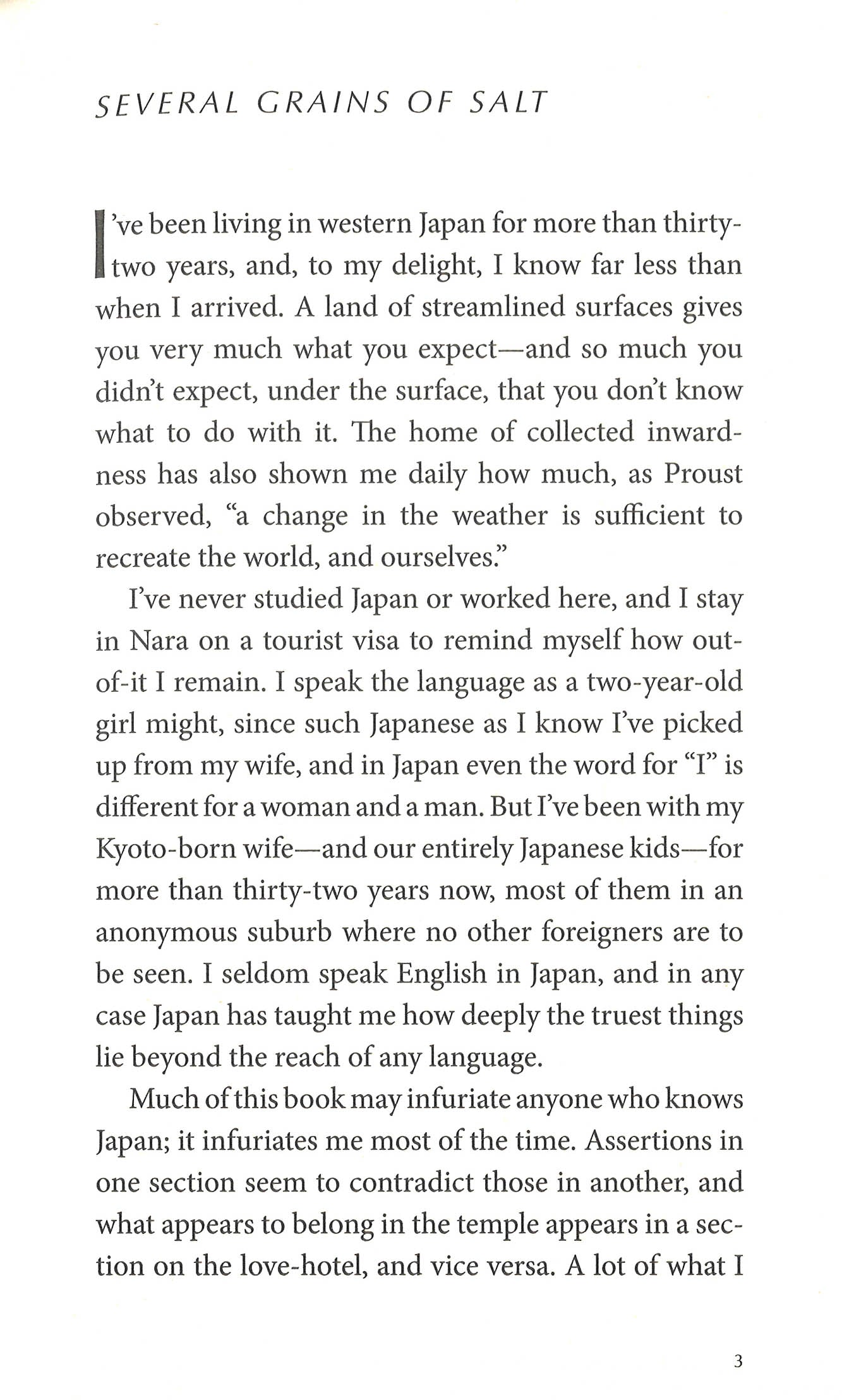 Why does anime make sense in an animist culture? How might Oscar Wilde reveal a culture too often associated with conformity? How can Japanese friends in a typical neighbourhood turn every stereotype on its head? His provocations may infuriate you - may even infuriate himself - Iyer confesses in his opening salvo, but maybe it's only by setting its love hotels next to its baseball stadia, its wild fashions against its eighth-century values, that Japan can be made new again for both the first-time visitor and the jaded foreign resident.