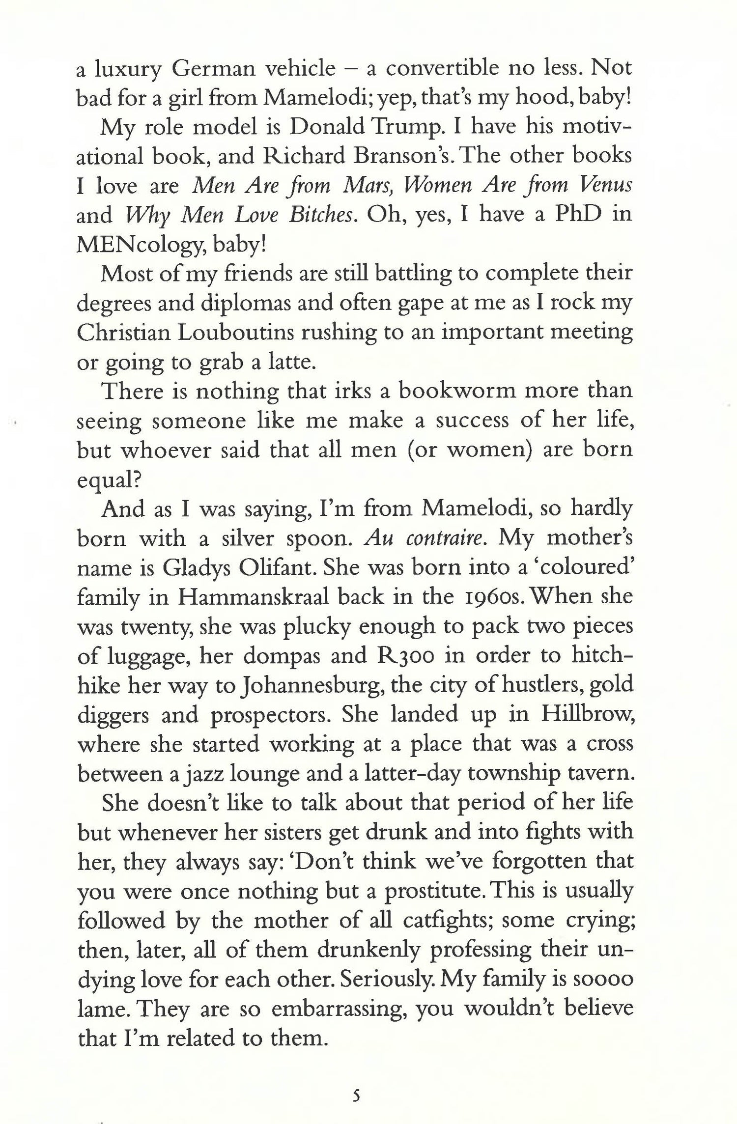 The most exciting new heroine I've read in a very long time' KATIE FFORDE THE INTERNATIONAL BESTSELLER LONGLISTED FOR THE 2018 SOUTH AFRICAN SUNDAY TIMES LITERARY AWARDS Young, beautiful and ambitious, Bontle Tau has Johannesburg wrapped around her finger. Her generous admirers are falling over themselves to pay for her Mercedes, her penthouse, and her Instagrammable holidays. It's her duty to look fabulous - after all, people didn't sacrifice their lives in the freedom struggle for black women to wear the same cheap T-shirts they wore during apartheid. Bontle's come a long way, and it hasn't been easy. Her shrink keeps wanted to talk about a past she's put firmly behind her. And what she doesn't think about can't hurt her, can it? Blessed adj. [pronounced bles-id] The state of being blessed, often referring to a person, usually female, who lives a luxurious lifestyle funded by an older, often married partner, in return for sexual favours.