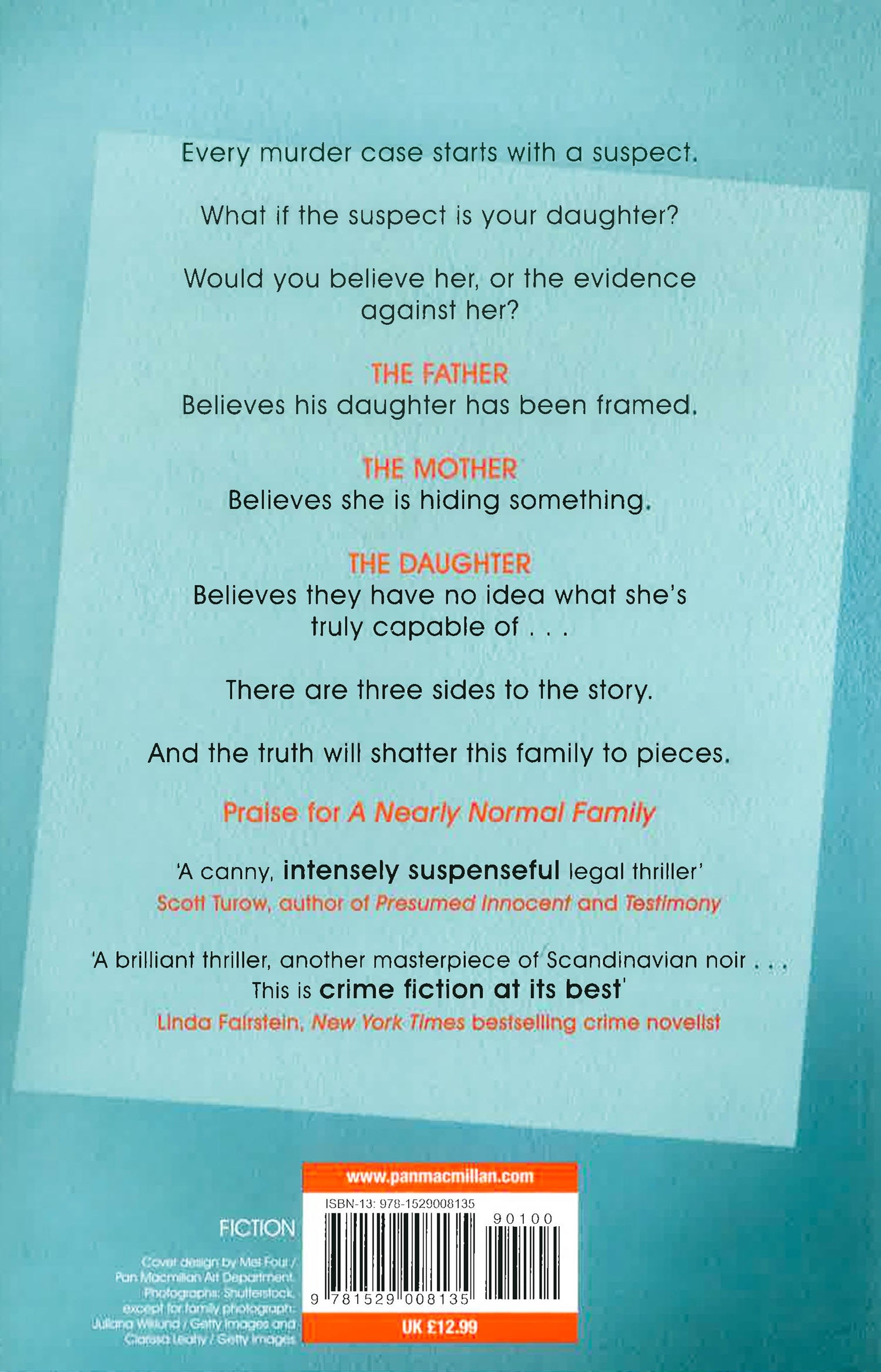 A deceptive and riveting novel' - Karin SlaughterChosen as one of the best seven thrillers of the summer by the New York TimesA Nearly Normal Family is the stunning psychological thriller from M. T. Edvardsson and asks what would you do if your child was suspected of murder, how far would you go to protect them? Do you want to know the truth? If you loved A. J. Finn's The Woman in the Window or J. P. Delaney's The Girl Before, you will love this.Every murder case starts with a suspect.What if the suspect is your daughter? Would you believe her, or the evidence against her?The FatherBelieves his daughter has been framed.The MotherBelieves she is hiding something.The DaughterBelieves they have no idea what she's truly capable of . . .There are three sides to the story.And the truth will shatter this family to pieces.Praise for A Nearly Normal Family'Tore through this in a matter of days . . . A cracking read!' - T M Logan'An absolutely fantastic read' - Jo Spain'An utterly compelling premise . . . a layered, intelligent novel' - Fiona Cummins'A canny, intensely suspenseful legal thriller' - Scott Turow'I couldn't go to bed until I finished it. Effortlessly brilliant' - Sandie Jones'Any parent will be gripped by this book . . . I couldn't put it down' - Michelle Frances'An unsettling page turner. Highly Recommended' Adam Hamdy