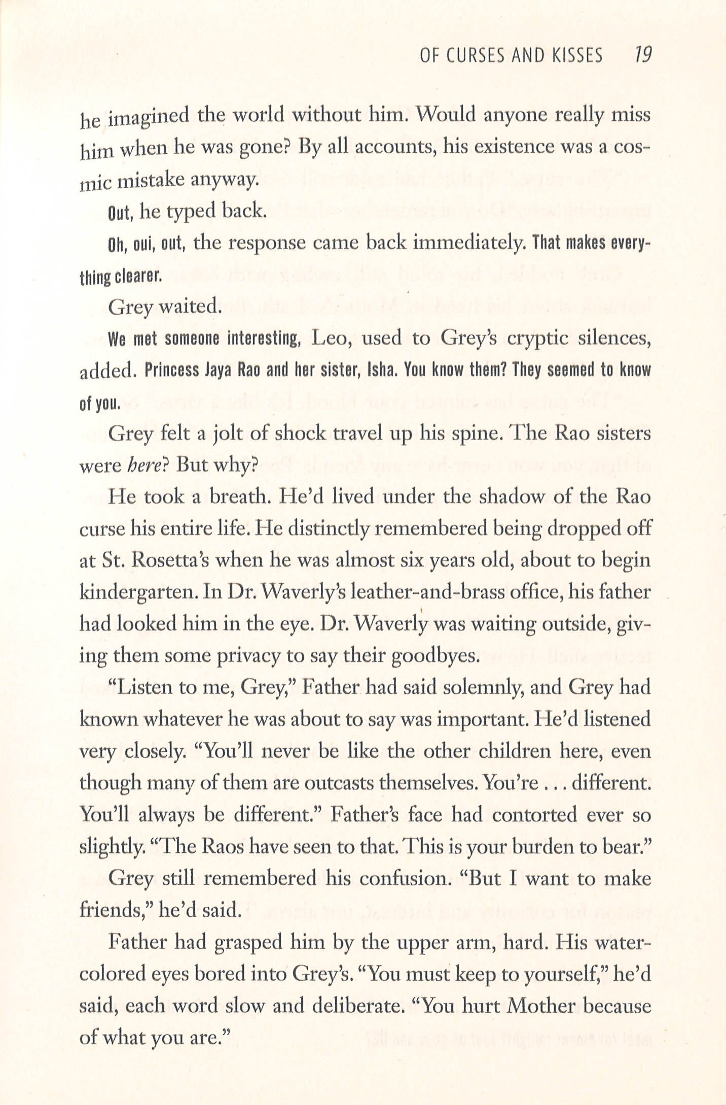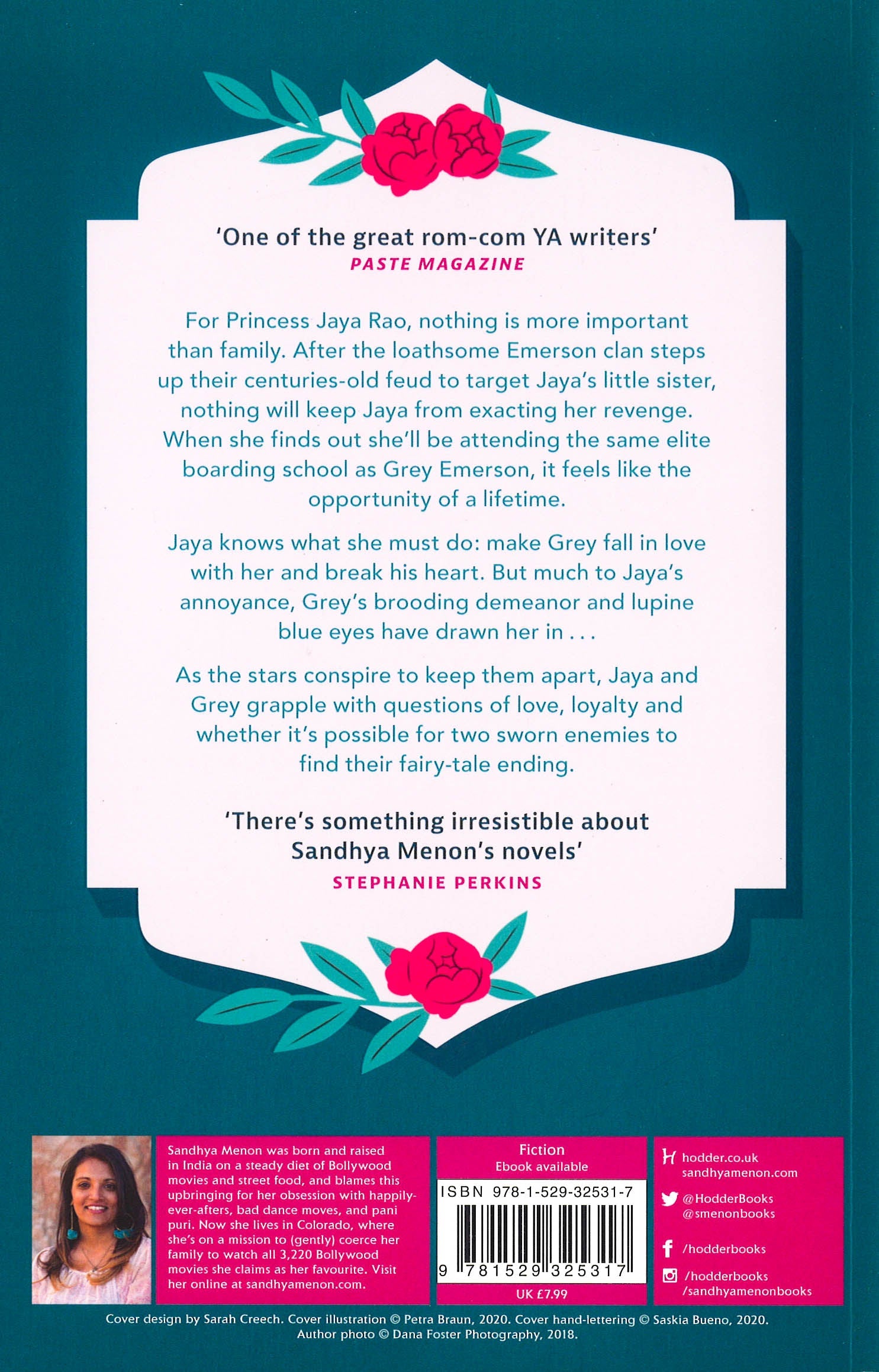 Grey Emerson doesn't connect with people easily. Due to a curse placed on his family by the Raos that his superstitious father unquestioningly, annoyingly believes in, Grey grew up internalising that he was doomed from the day he was born. Sequestered away at St. Rosetta's Academy, he's lived a quiet existence in relative solitude. That is, until Jaya Rao bursts into his life. Jaya is exuberant and elegant and unlike anyone Grey has ever met before, but he can't help feeling that she's hiding something behind her beautiful smile and charmingly awkward attempts at flirting. Despite his better instincts, though, he starts to fall for her.