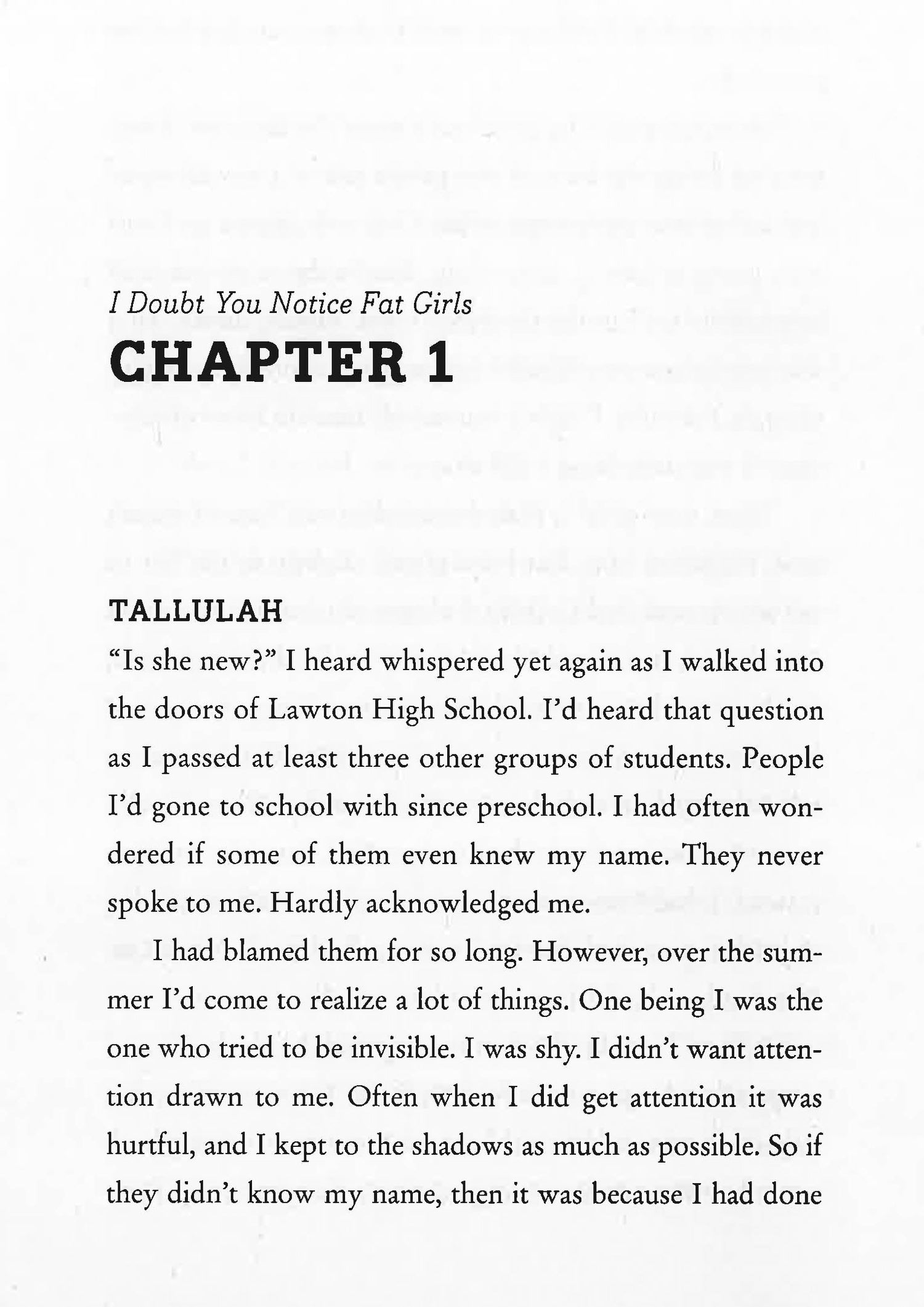 Tallulah Liddell had been defined by her appearance for as long as she could remember. Overweight and insecure, she preferred to fly under the radar, draw as little attention to herself so no one can hurt her. The only boy who did seem to ever notice her was her longtime crush, Nash Lee. But when he laughs at a joke aimed at Tallulah the summer before their senior year, Tallulah’s love dissipates, and she becomes determined to lose weight, to no longer be an object of her classmates’—and especially Nash’s—ridicule.