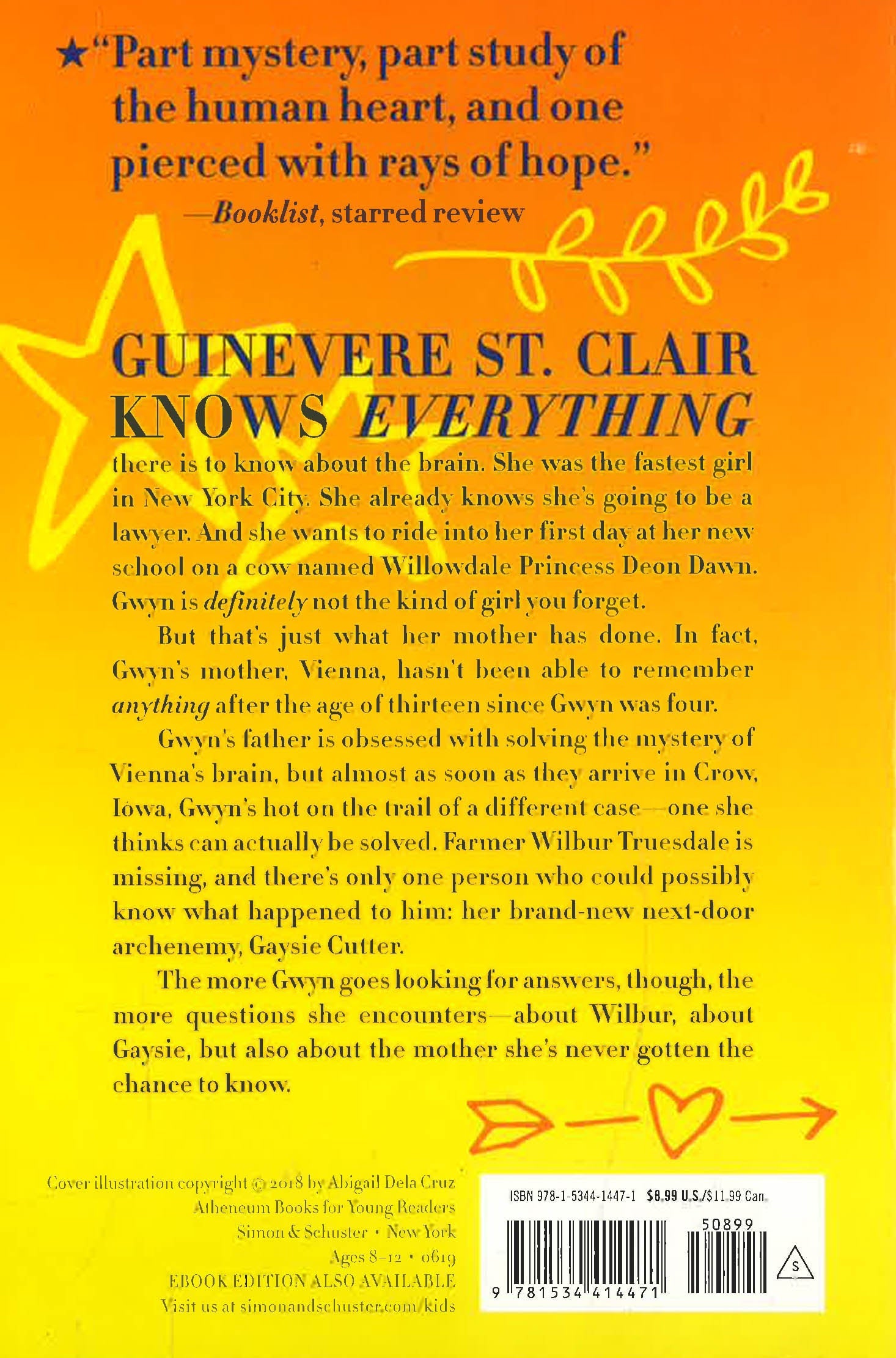 Guinevere St. Clair is going to be a lawyer. She was the fastest girl in New York City. She knows everything there is to know about the brain. And now that she's living in Crow, Iowa, she wants to ride into her first day of school on a cow named Willowdale Princess Deon Dawn.