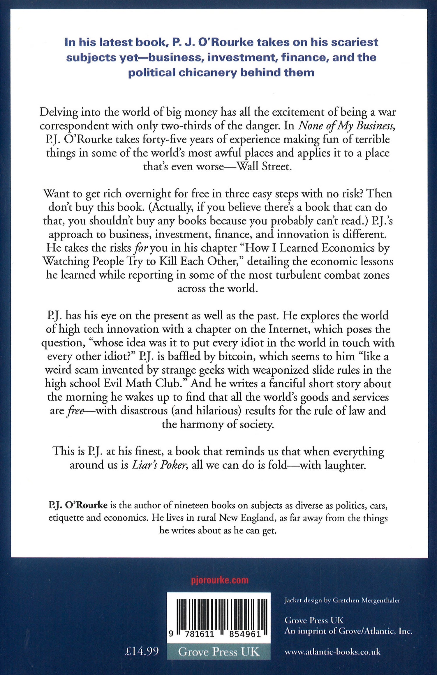 After decades covering war and disaster, bestselling author and acclaimed satirist P. J. O'Rourke takes on his scariest subjects yet? business, investment, finance and the political chicanery behind them.Want to get rich overnight for free in 3 easy steps with no risk? Then don't buy this book. (Actually, if you believe there's a book that can do that, you shouldn't buy any books because you probably can't read.) P.J.'s approach to business, investment and finance is different. He takes the risks for you in his chapter 'How I Learned Economics by Watching People Try to Kill Each Other.' He proposes 'A Way to Raise Taxes That We'll All Love'?a 200% tax on celebrities. He offers a brief history of economic transitions before exploring the world of high-tech innovation with a chapter on 'Unnovations,' which asks, 'The Internet?whose idea was it to put all the idiots on earth in touch with each other?' He pokes fun at bitcoin, and closes with a fanciful short story about the morning that he wakes up and finds that all the world's goods and services are free! This is P.J. at his finest, a book not to be missed.