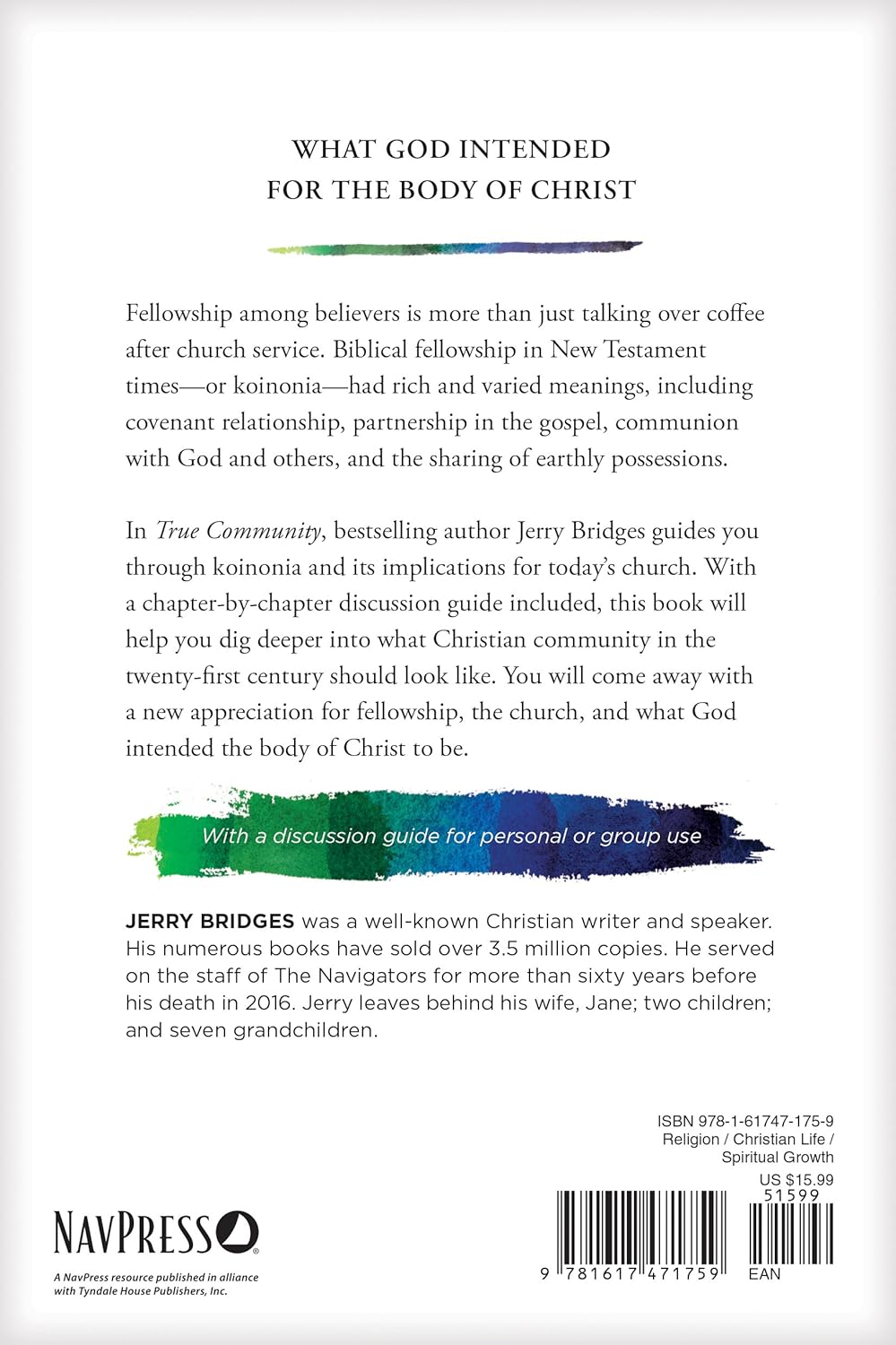 In True Community, bestselling author Jerry Bridges guides you through koinonia and its implications for today's church. With discussion questions at the end of each chapter, this book will help you dig deeper into what Christian community in the twenty-first century should look like. You will come away with a new appreciation for fellowship, the church, and what God intended the body of Christ to be.