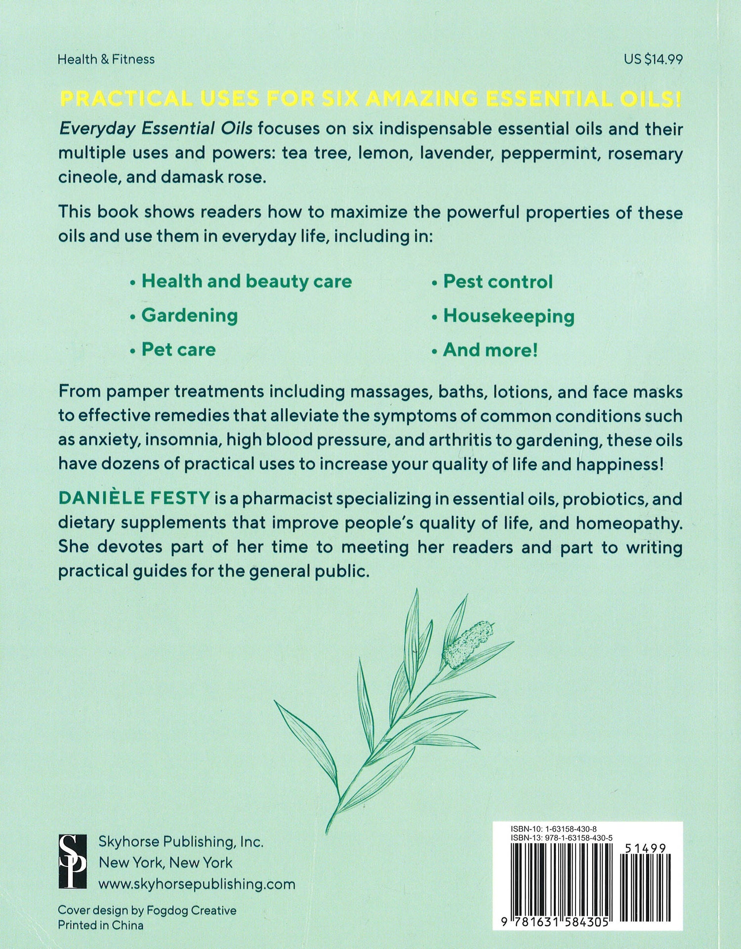 Everyday Essential Oils focuses on six indispensable essential oils and their multi-purpose uses and powers: tea tree, lemon, lavender, peppermint, rosemary cineole, and Damask rose. This book shows readers how to maximize the powerful properties of these oils and use them everyday life, including in: Health and beauty careGardeningPet carePest controlHousekeepingAnd more! From pamper treatments including massages, baths, lotions, face masks to creating effective remedies to alleviate the symptoms of common conditions such as anxiety, insomnia, high blood pressure, and arthritis to gardening, these oils have dozens of practical uses to increase your quality of life and happiness!
