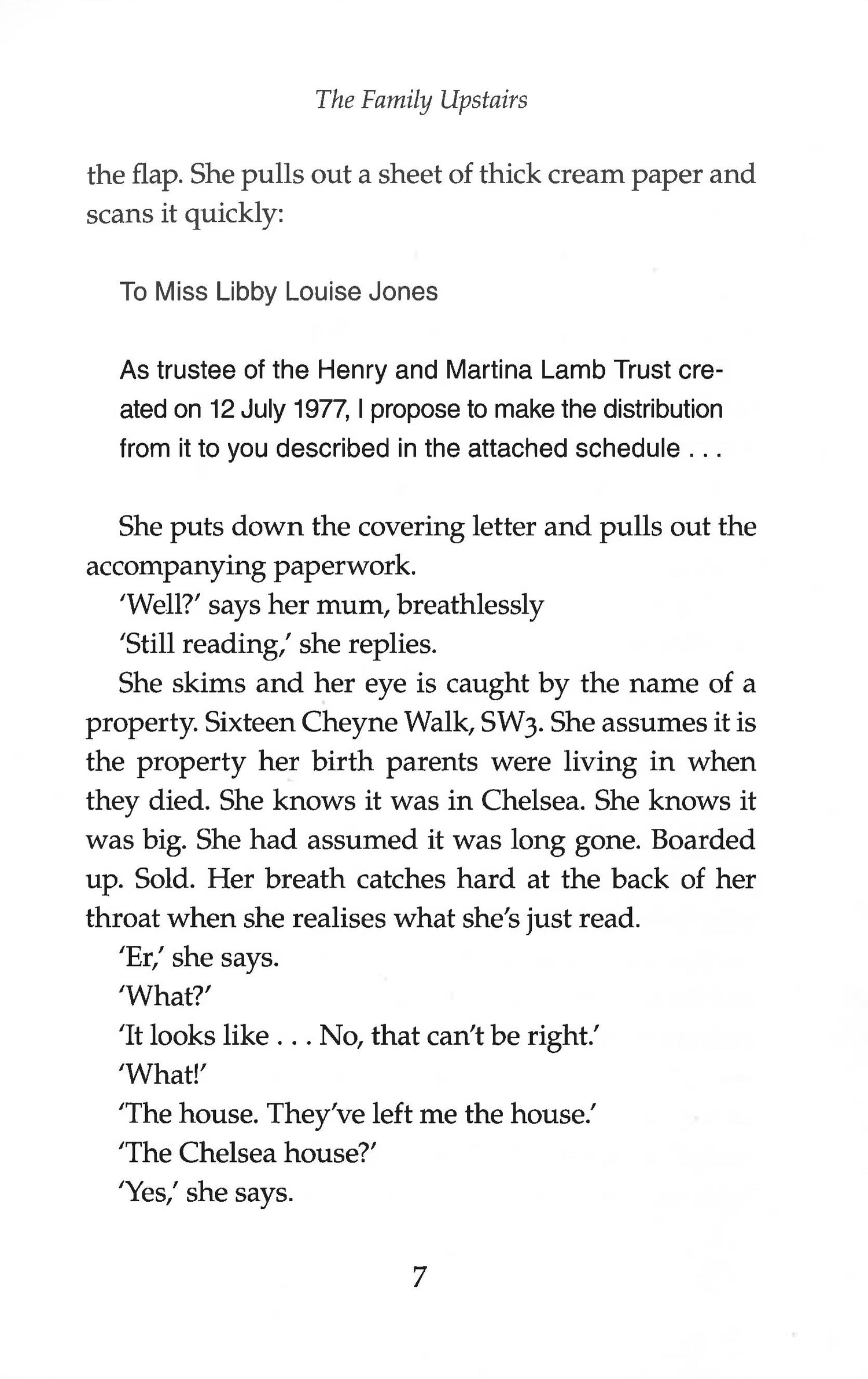 I swear I didn't breathe the whole time I was reading it. Gripping, pacy, brilliantly twisty.' CLARE MACKINTOSH'Creepy, intricate and utterly immersive: an excellent holiday read.' GUARDIAN'A twisty and engrossing story of betrayal and redemption.' IAN RANKIN____________________________FROM THE #1 BESTSELLING AUTHOR OF THEN SHE WAS GONEIn a large house in London's fashionable Chelsea, a baby is awake in her cot. Well-fed and cared for, she is happily waiting for someone to pick her up.In the kitchen lie three decomposing corpses. Close to them is a hastily scrawled note. They've been dead for several days.Who has been looking after the baby? And where did they go?Two entangled families.A house with the darkest of secrets.A compulsive new thriller from Lisa Jewell.____________________________'Rich, dark and intricately twisted, this enthralling whodunnit mixes family saga with domestic noir to brilliantly chilling effect.' RUTH WARE'You don't read a Lisa Jewell book, you fall into it. It takes huge talent to establish a whole world in the turn of two pages.' ERIN KELLY'I had an unrelentingly pleasurable and thrilling for-God's-sake-tell-me-what-happened sensation in my stomach for the entire read ... Stupendous!' RUTH JONES'Absolutely brilliant. Great characterisation, a fascinating and dark set up and a great conclusion. She's always great but this is next level stuff.' SARAH PINBOROUGH'Few writers of psychological suspense devise such swift, slippery plots; fewer still people their stories with characters so human and complex. Lisa's Jewell's The Family Upstairs glitters like a blade and cuts even deeper.' AJ FINN'Whenever I pick up a Lisa Jewell novel I know I'm in for a compelling, immersive and unputdownable read and The Family Upstairs is one of her very best' CL TAYLOR'I had hoped to save The Family Upstairs for my holiday, but failed miserably ... I was hooked from the first page. I think it's her best yet and hands down my favourite book so far this year.' ALICE FEENEY'Utterly compelling. Deliciously dark and twisty with characters who live on in your head. Lisa Jewell just keeps getting better and better.' JANE CORRY'This is my pick of the crop of thrillers out this month ... Lisa Jewell is brilliant at creating a menacing atmosphere and this is almost unbelievably tense at times.' GOOD HOUSEKEEPING'It's absolutely bloody brilliant and I can't tell you much I wish I'd written it.' TAMMY COHEN'It's SO GOOD!' INDIA KNIGHT'I loved The Family Upstairs!' SARAH JESSICA PARKER____________________________Readers are obsessed with The Family Upstairs:'I read so many books in the crime/mystery genre that it becomes harder to find a book that stands out. This one succeeded!! Hooked from page one''I totally adored this book. All of Lisa Jewell's books are fabulous, but something about this one is extra special.''Absolutely absorbing ... thoroughly enjoyed it''Kept me captivated from the very beginning ... Definitely worth reading - as long you like reading into the night!''Everything you could wish for in a book. I devoured it.''Wow!!''What a book. Clever would be an understatement. And those last pages left me with chills. The concept had me intrigued and the execution had me captivated. I COULD NOT PUT THIS BOOK DOWN!'