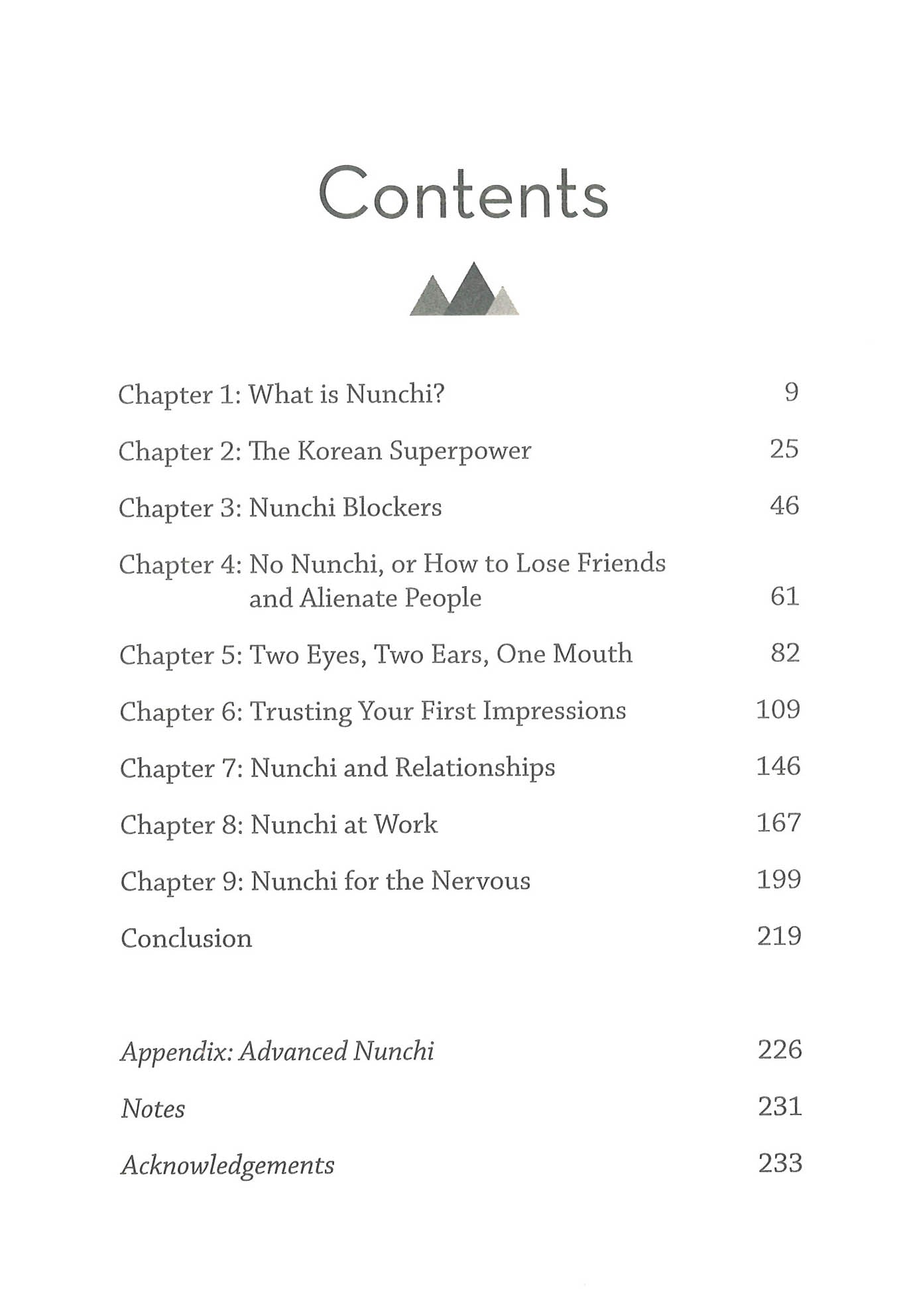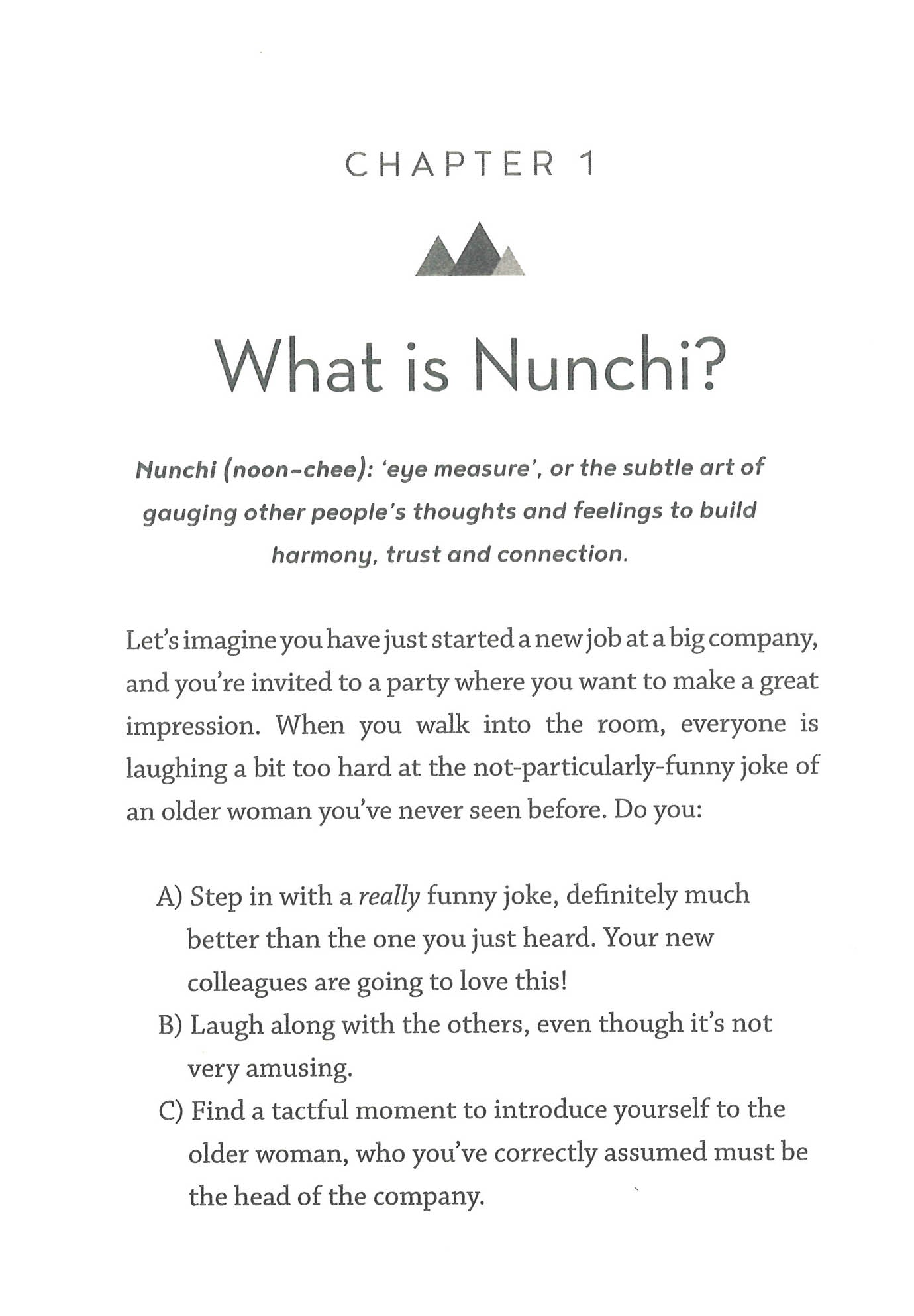 The great news is that anyone can hone their nunchi, immediately: all you need are your eyes and ears. In everything, from finding love to excelling at work, improving your nunchi will help you to open doors you never knew existed.