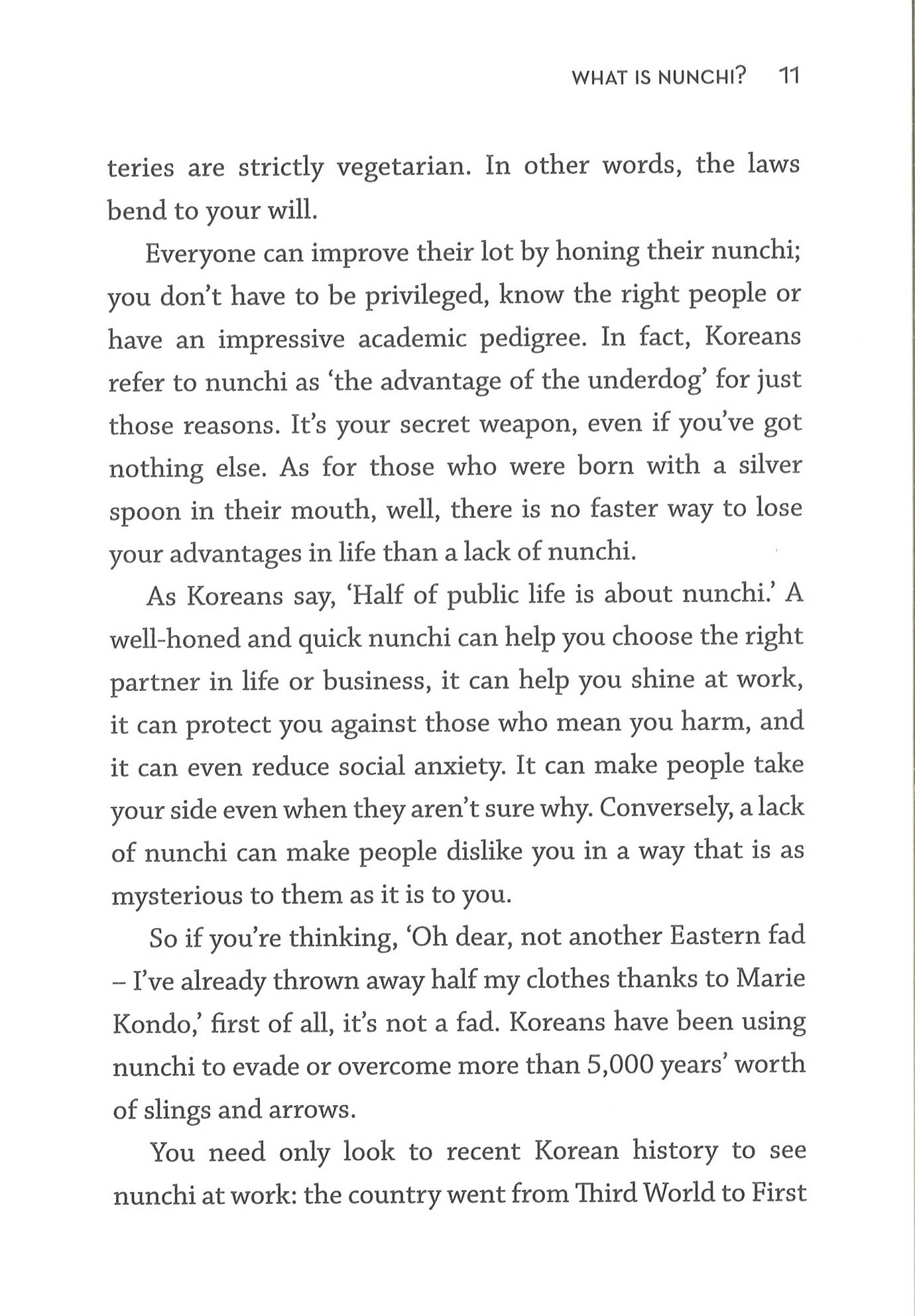 Nunchi is the guiding principle of Korean life, but anyone can use it: it’s the art of reading a room, your way of understanding what other people are thinking and feeling, and using that to get ahead.
