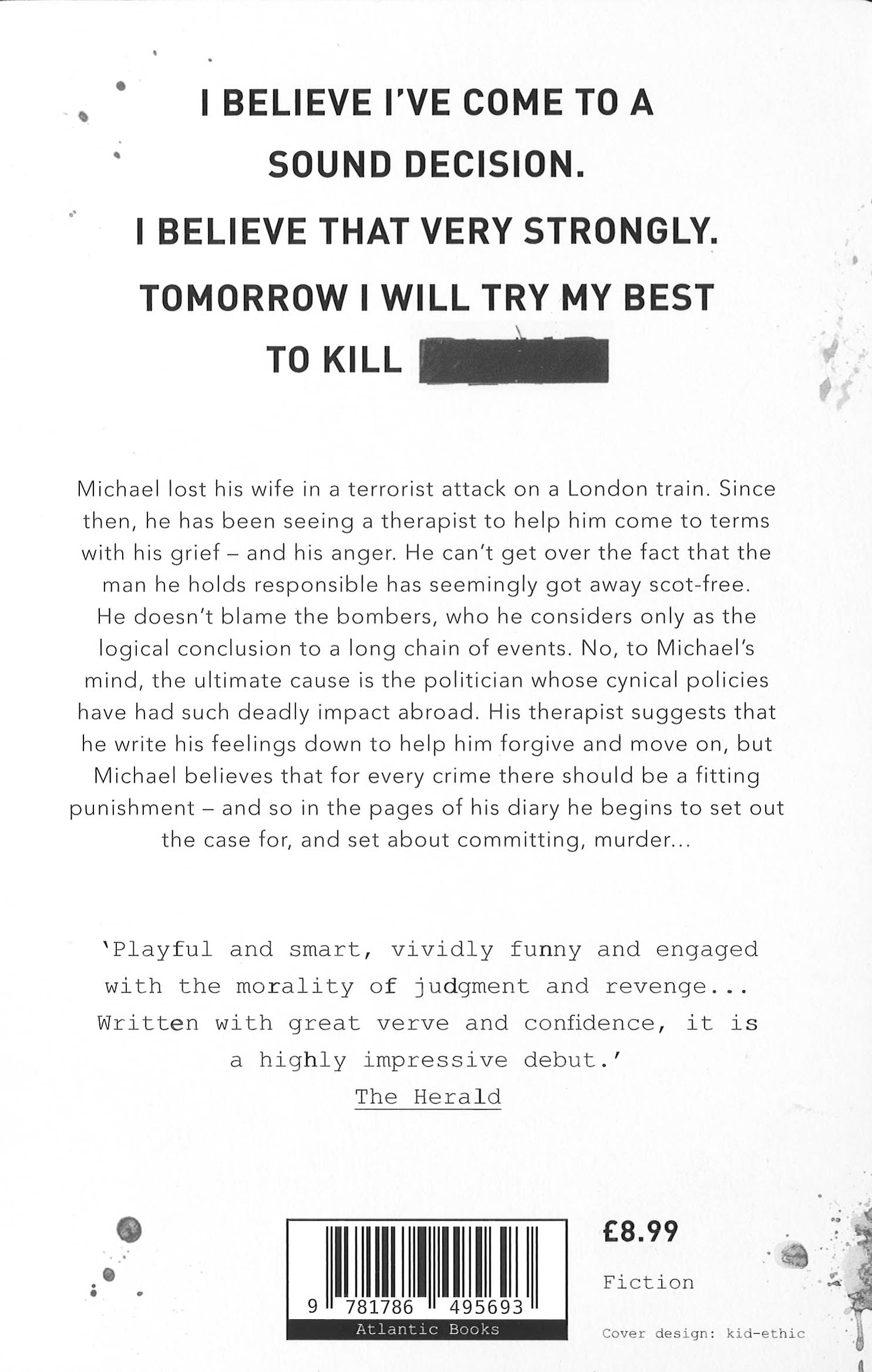 Provocative and compelling, it is a spectacular debut' - Daily MailMichael lost his wife in a terrorist attack on a London train. Since then, he has been seeing a therapist to help him come to terms with his grief - and his anger. He can't get over the fact that the man he holds responsible has seemingly got away scot-free. He doesn't blame the bombers, who he considers only as the logical conclusion to a long chain of events. No, to Michael's mind, the ultimate cause is the politician whose cynical policies have had such deadly impact abroad. His therapist suggests that he write his feelings down to help him forgive and move on, but as a retired headteacher, Michael believes that for every crime there should be a fitting punishment - and so in the pages of his diary he begins to set out the case for, and set about committing, murder. Waltzing through the darkling journal of a brilliant mind put to serious misuse, Kill [redacted] is a powerful and provocative exploration of the contours of grief and the limits of moral justice, and a blazing condemnation of all those who hold, and abuse, power.ONE OF THE BEST DEBUT NOVELS of 2019 (the i )