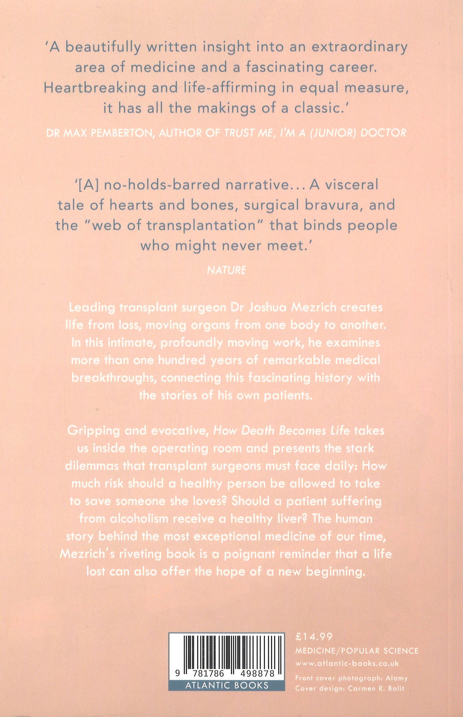 Leading transplant surgeon Dr Joshua Mezrich creates life from loss, moving organs from one body to another. In this intimate, profoundly moving work, he examines more than one hundred years of remarkable medical breakthroughs, connecting this fascinating history with the stories of his own patients.