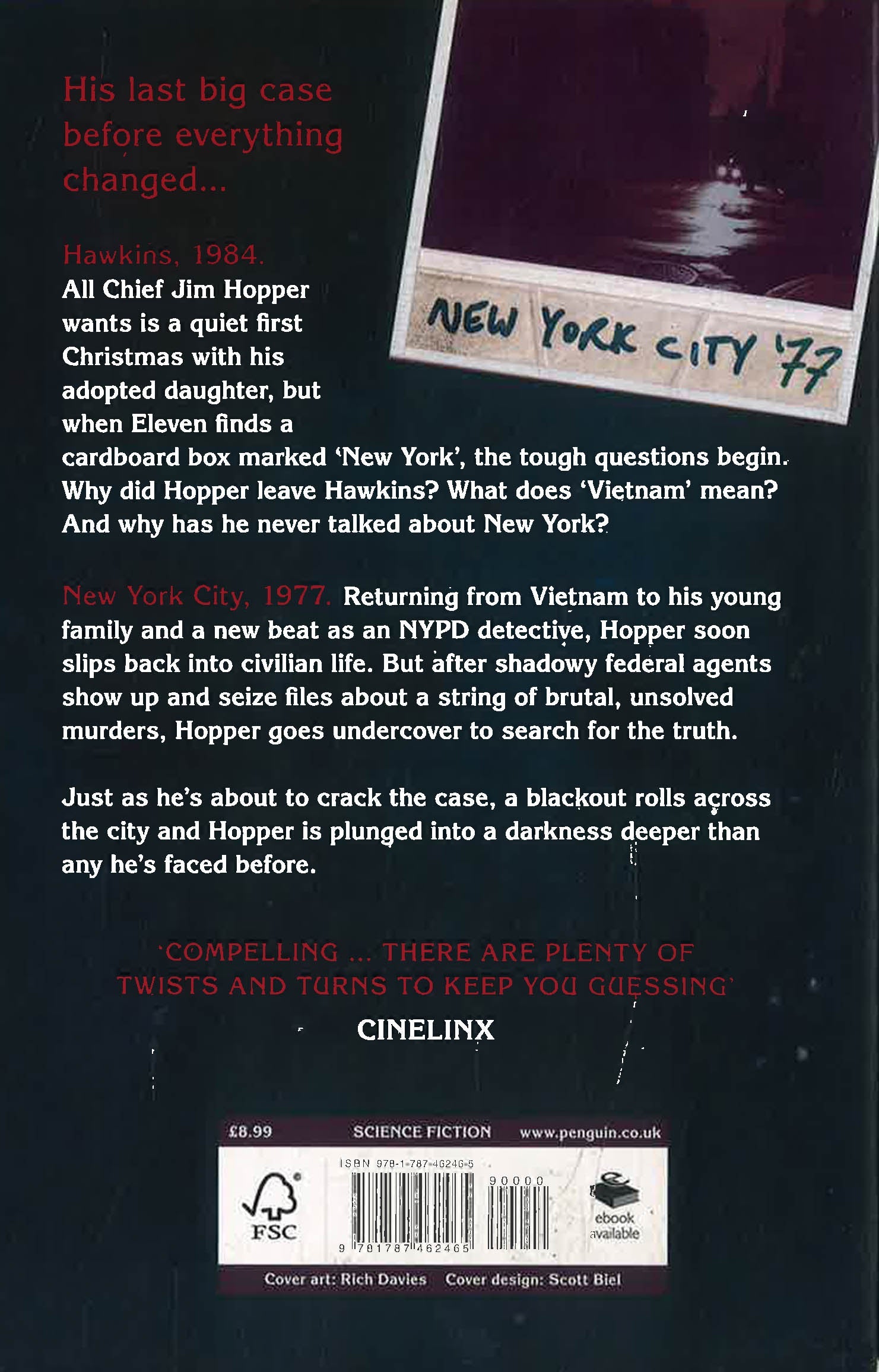 Christmas, Hawkins, 1984. All Chief Jim Hopper wants is to enjoy a quiet first Christmas with Eleven, but his adopted daughter has other plans. Over Hopper’s protests, she pulls a cardboard box marked “New York” out of the basement―and the tough questions begin. Why did Hopper leave Hawkins all those years ago? What does “Vietnam” mean? And why has he never talked about New York?