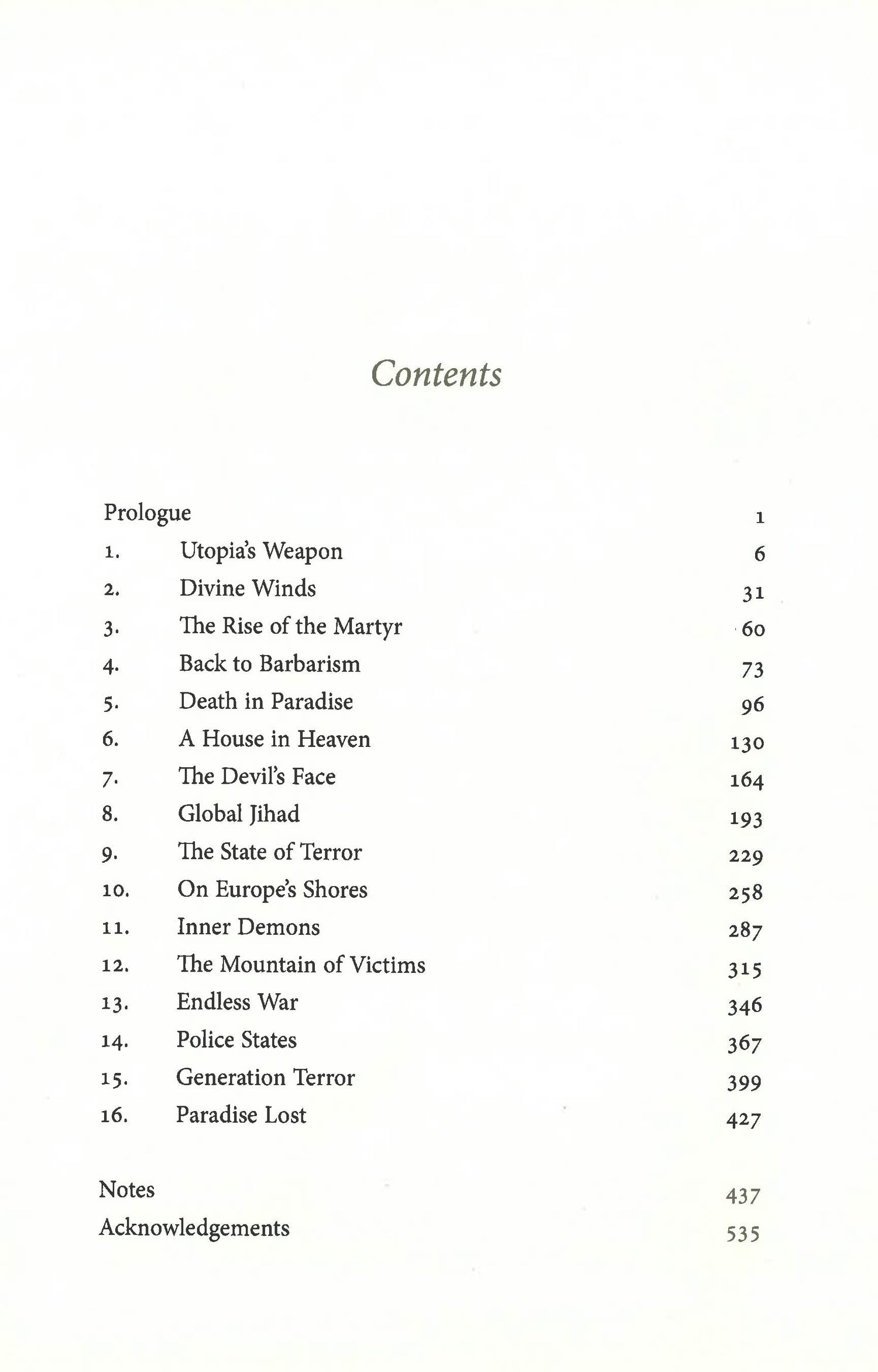 Interviewing Russian anarchists, Japanese kamikazes, Hezbollah militants, survivors of suicide bombings and countless other sources of valuable information, while travelling to places such as Iran, Irak and Pakistan, Overton skilfully combines historical narrative, travelogue, interviews and testimonies, and brings his research alive thanks to potent facts and visceral storytelling.