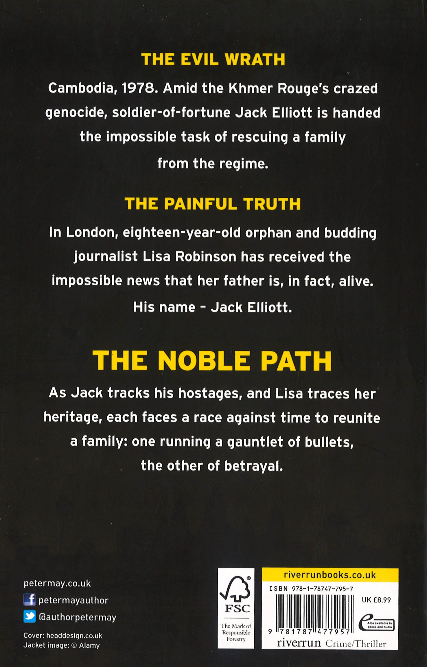 THE SIX-MILLION COPY BESTSELLING AUTHOR OF THE LEWIS TRILOGY, THE ENZO FILES AND THE CHINA THRILLERSAWARD WINNING AUTHOR OF THE CWA DAGGER IN THE LIBRARY 2021'Peter May is one of the most accomplished novelists writing today.' Undiscovered Scotland'No one can create a more eloquently written suspense novel than Peter May.' New York Journal of BooksThe Noble Path is Peter May's explosive standalone thriller set in Cambodia and Thailand amid the bloody reign of the Khmer RougeTHE EVIL WRATHCambodia, 1978. Amid the Khmer Rouge's crazed genocide, soldier-of-fortune Jack Elliott is given the impossible task of rescuing a family from the regime.THE PAINFUL TRUTHEighteen-year-old orphan and budding journalist Lisa Robinson has received the impossible news that her father is, in fact, alive. His name - Jack Elliott.THE NOBLE PATHAs Jack tracks the hostages and Lisa traces her heritage, each is intent on reuniting a family. Yet to succeed, so must run a dangerous gauntlet of bullets and betrayal.LOVED THE NOBLE PATH? Read Peter May's prescient standalone thriller, THE MAN WITH NO FACELOVE PETER MAY? Order his new thriller, A SILENT DEATH
