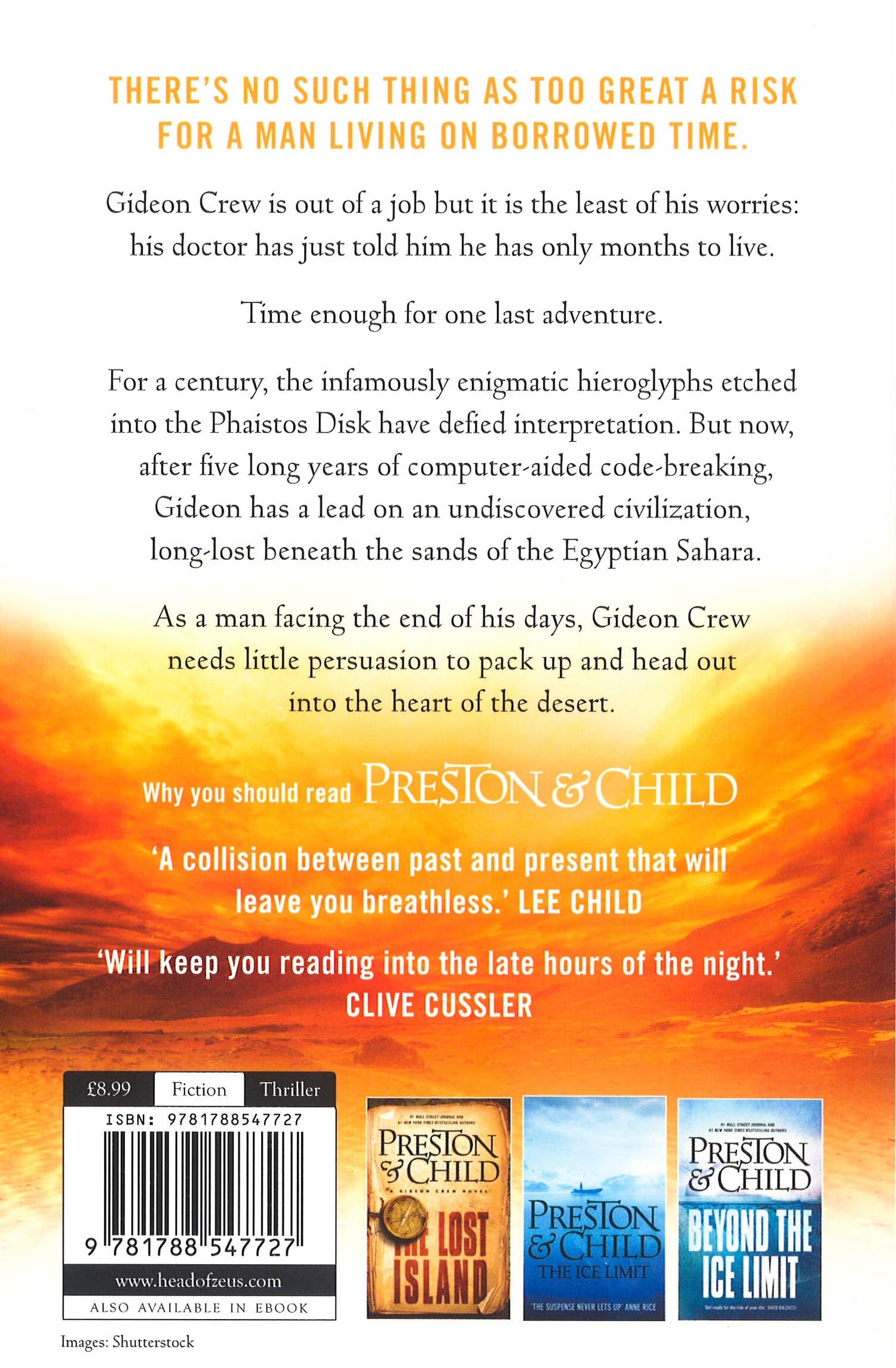 The latest pulse-pounding thriller from New York Times bestsellers Preston & Child. There's no such thing as too great a risk for a man living on borrowed time. Gideon Crew is out of a job but it is the least of his worries: his doctor has just told him he has only months to live. Time enough for one last adventure. For a century, the infamously enigmatic hieroglyphs etched into the Phaistos Disk have defied interpretation. But now, after five long years of computer-aided code-breaking, Gideon has a lead on an undiscovered civilization, long-lost beneath the sands of the Egyptian Sahara. As a man facing the end of his days, Crew needs little persuasion to pack up and head out into the heart of the desert. 'Sit back, crack open the book and get ready for the ride of your life' DAVID BALDACCI. 'A collision between past and present that will leave you breathless' LEE CHILD. 'Relentless mayhem... [A] thrill-a-minute read' KIRKUS. 'Their most expertly executed entertainment yet... A big-boned thriller, one that will make a terrific movie' PUBLISHERS WEEKLY. 'Will keep you reading into the late hours of the night' CLIVE CUSSLER.